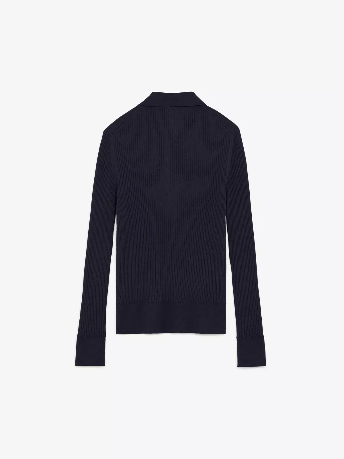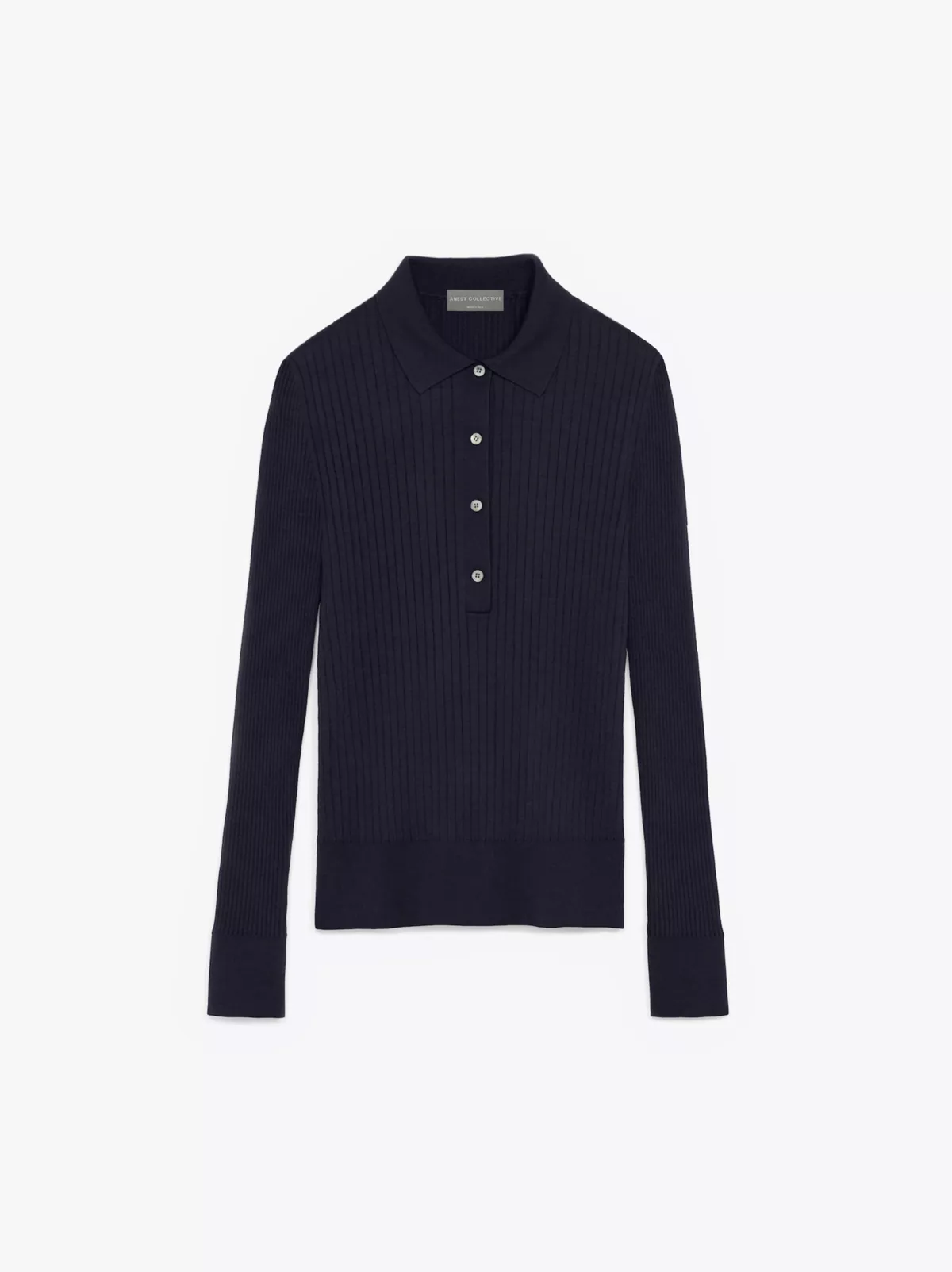 This polo is knitted in Italy from soft cashmere and silk blend, and has a classic polo collar. It's heavy ribbed to enhance the slim fit and accentuate your curves. It features long sleeves and it's ideal for a daily wear use.