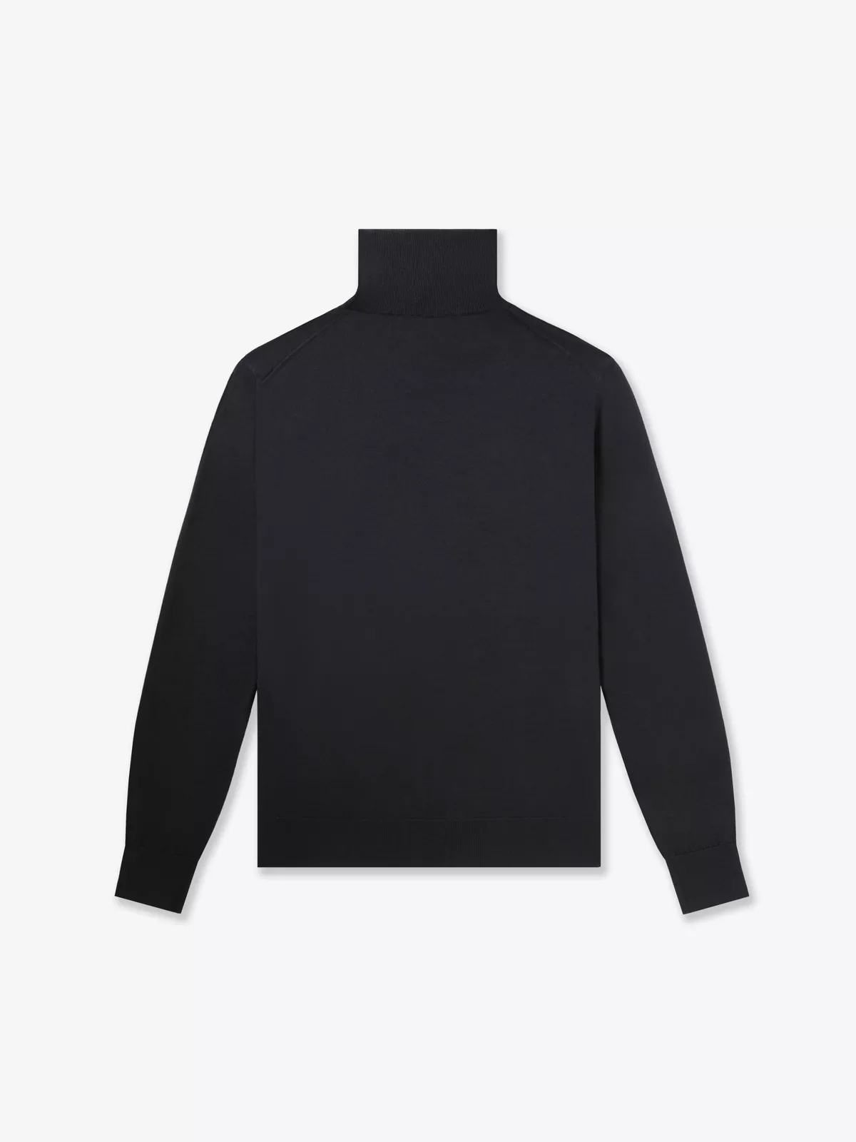 Revisited for FW22, this fine-gauge mock-neck sweater is made from a lightweight wool-silk-and-cashmere blend with a graphic ribbed detail on the arms and shoulder.