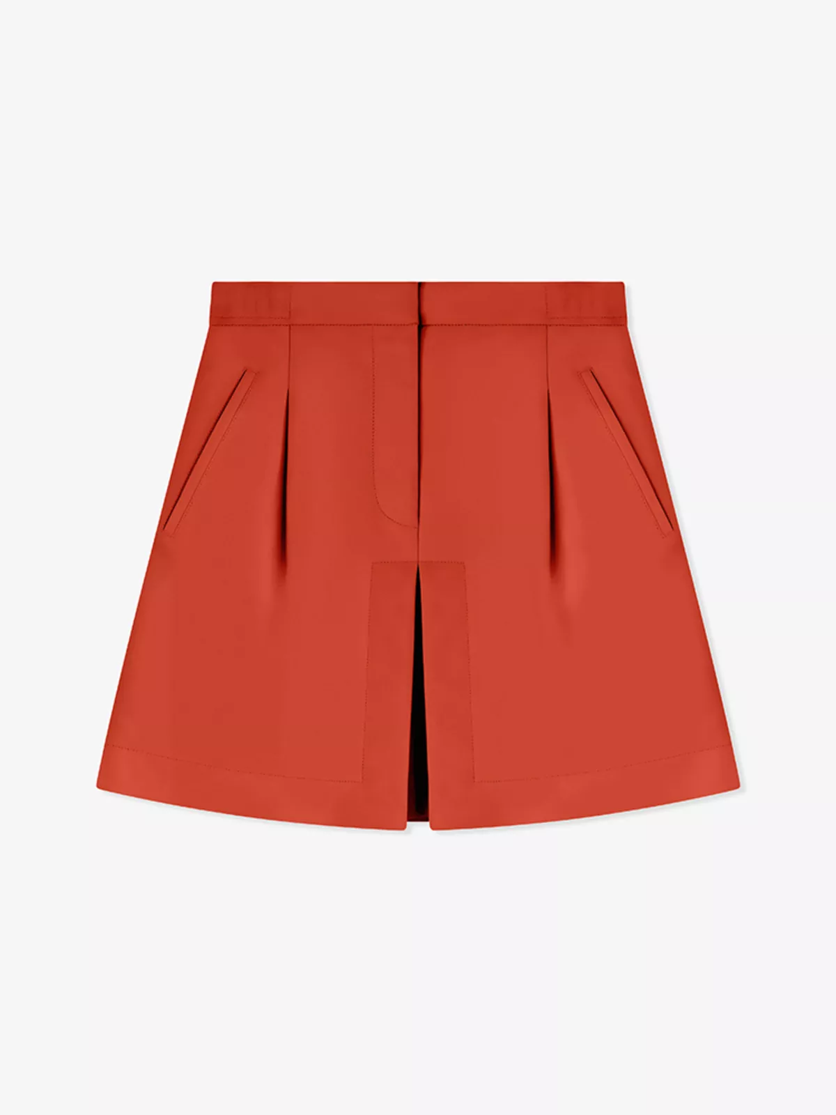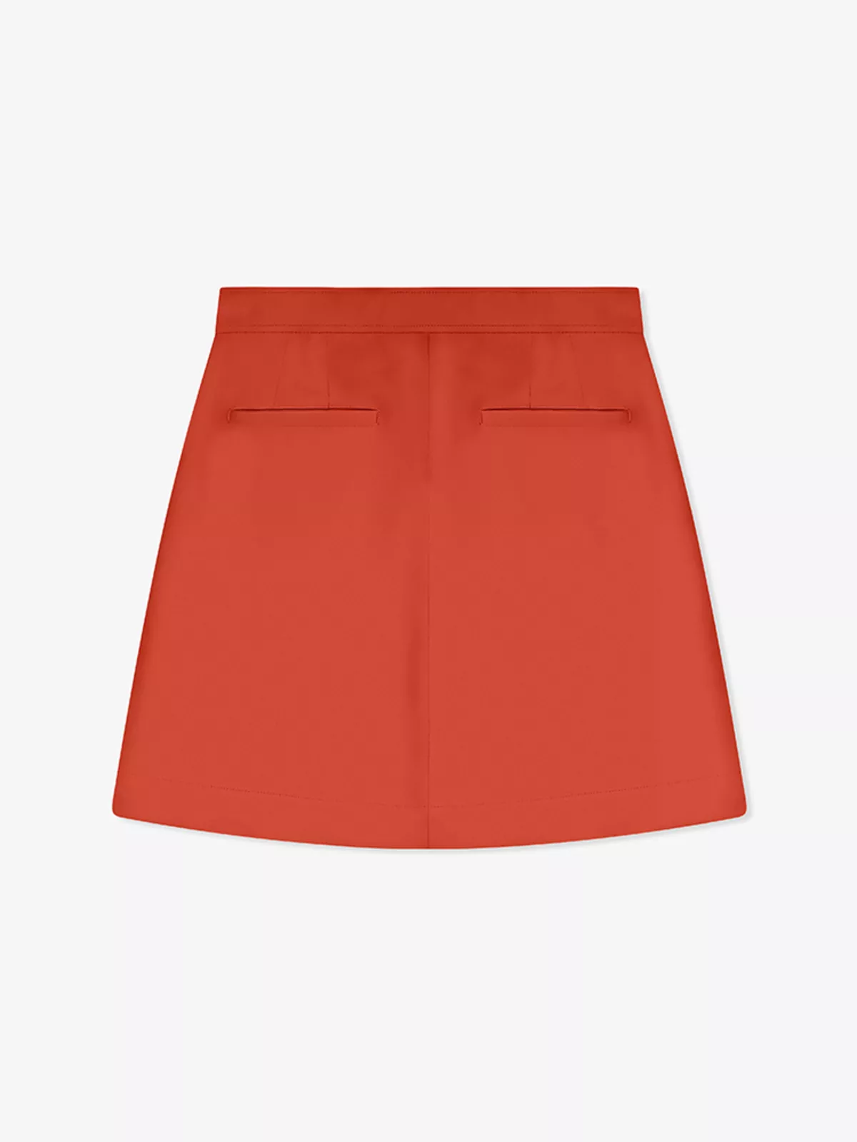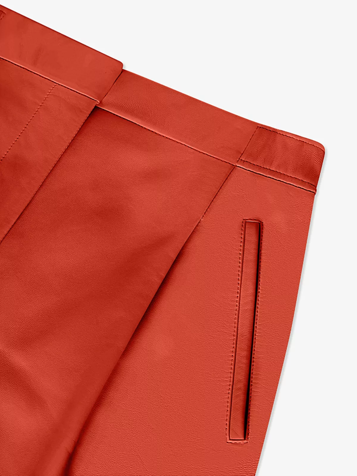 Leather pant skirt with an elasticated back waistband and jetted side pockets.