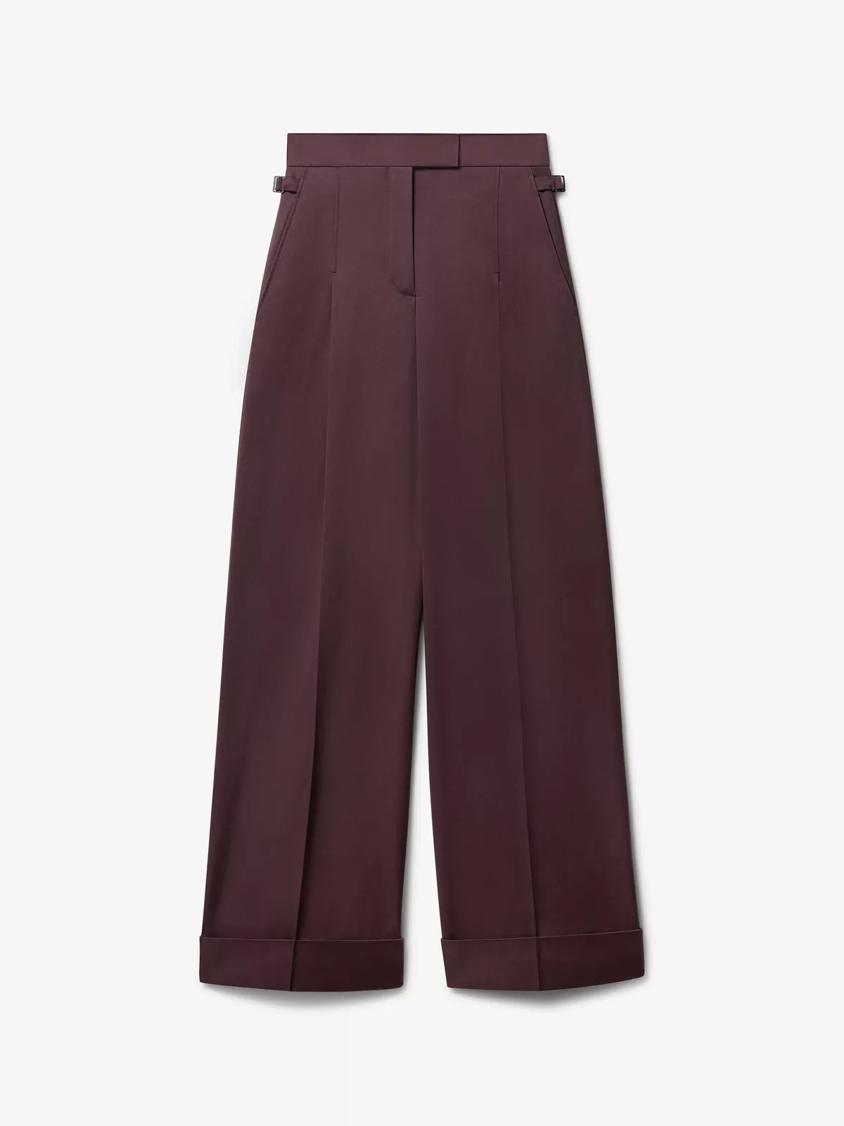Crafted from a cotton-gabardine and shaped to a relaxed silhouette with a high waist, these elegant wide-leg trousers have an adjustable belt and turned-up cuffs.