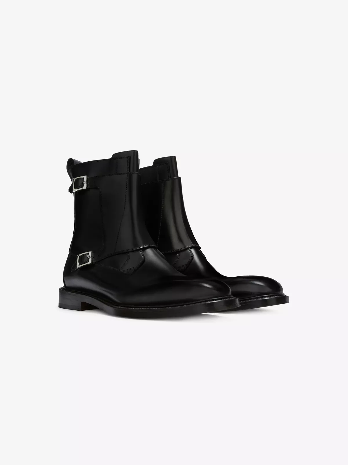 Handmade from a smooth calf leather, these ankle boots have contemporary topstitching details, a softly squared toe, a double monk strap and an inside zip fastening.