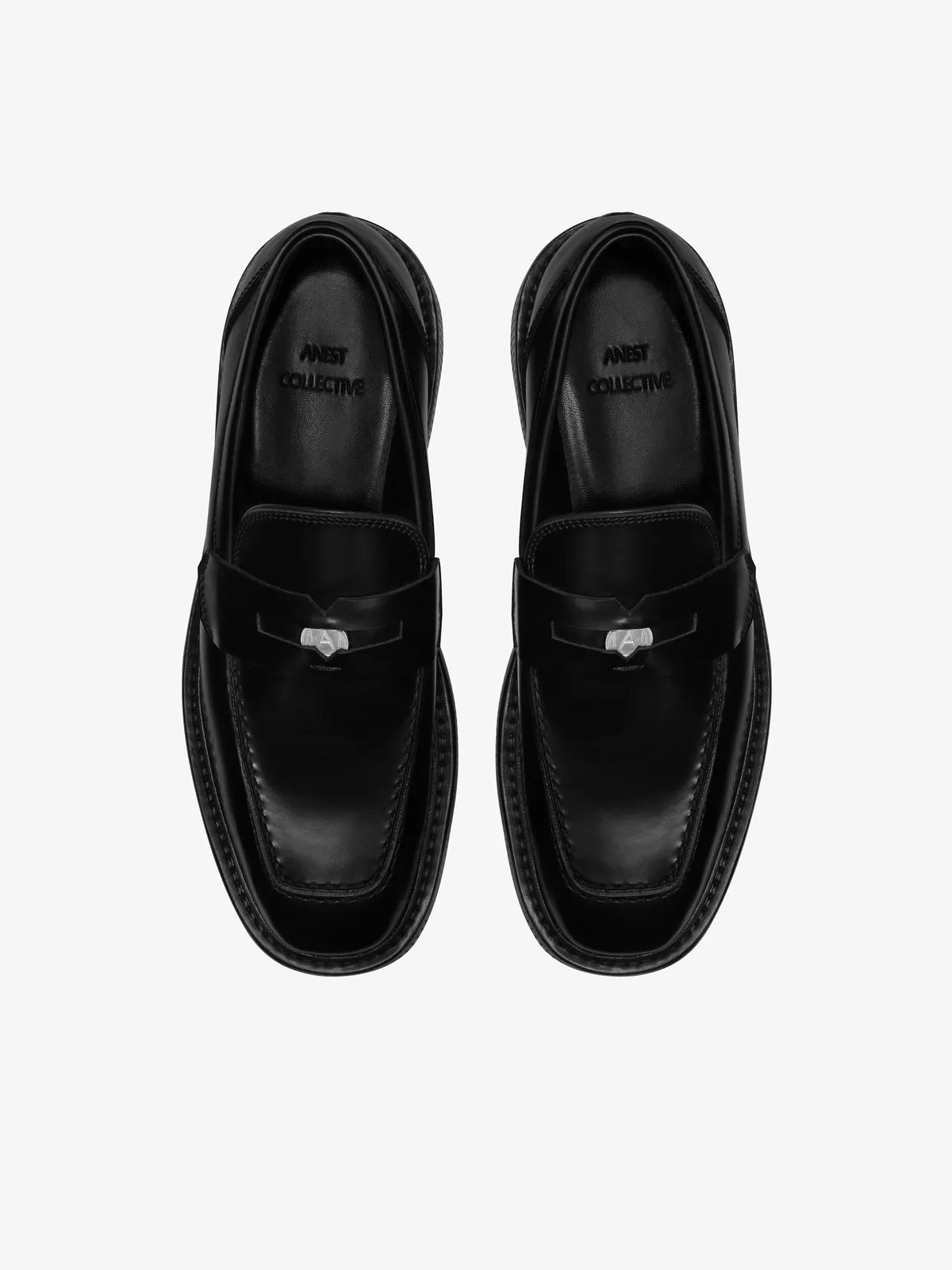 BRUSHED CALF LEATHER PENNY LOAFER IN BLACK