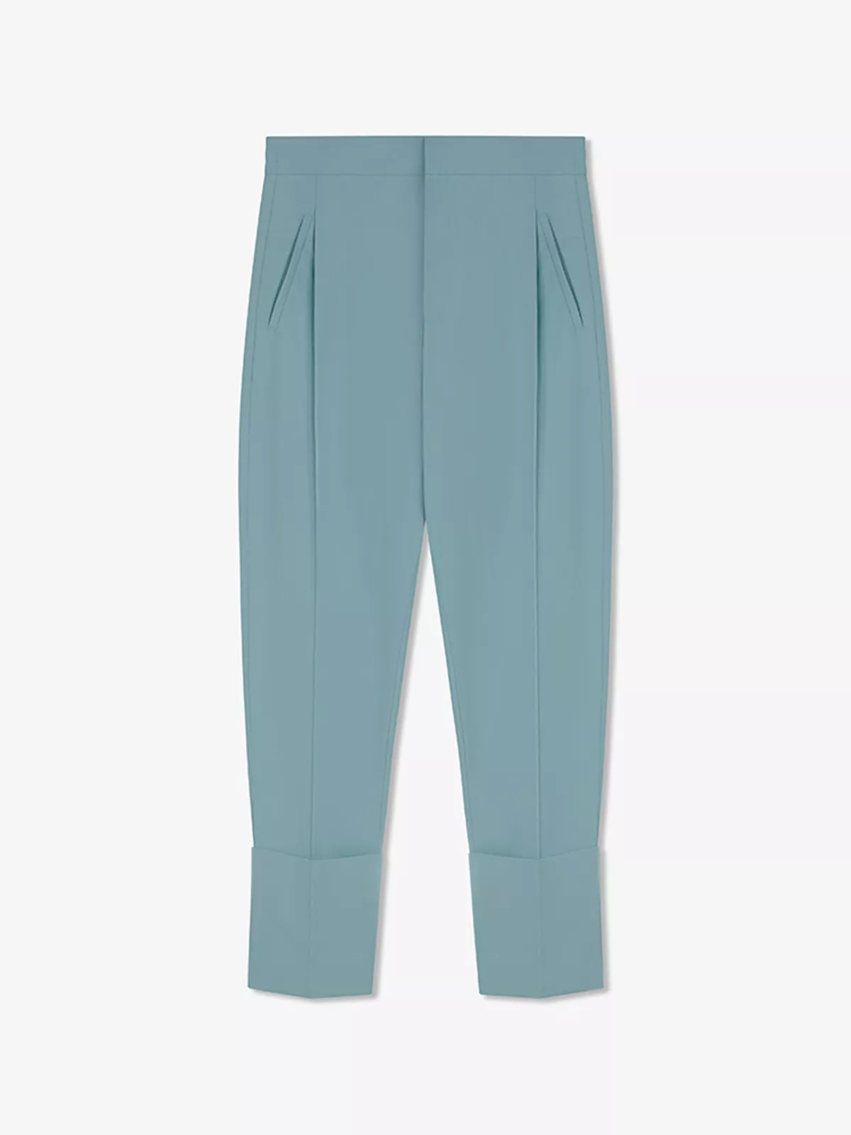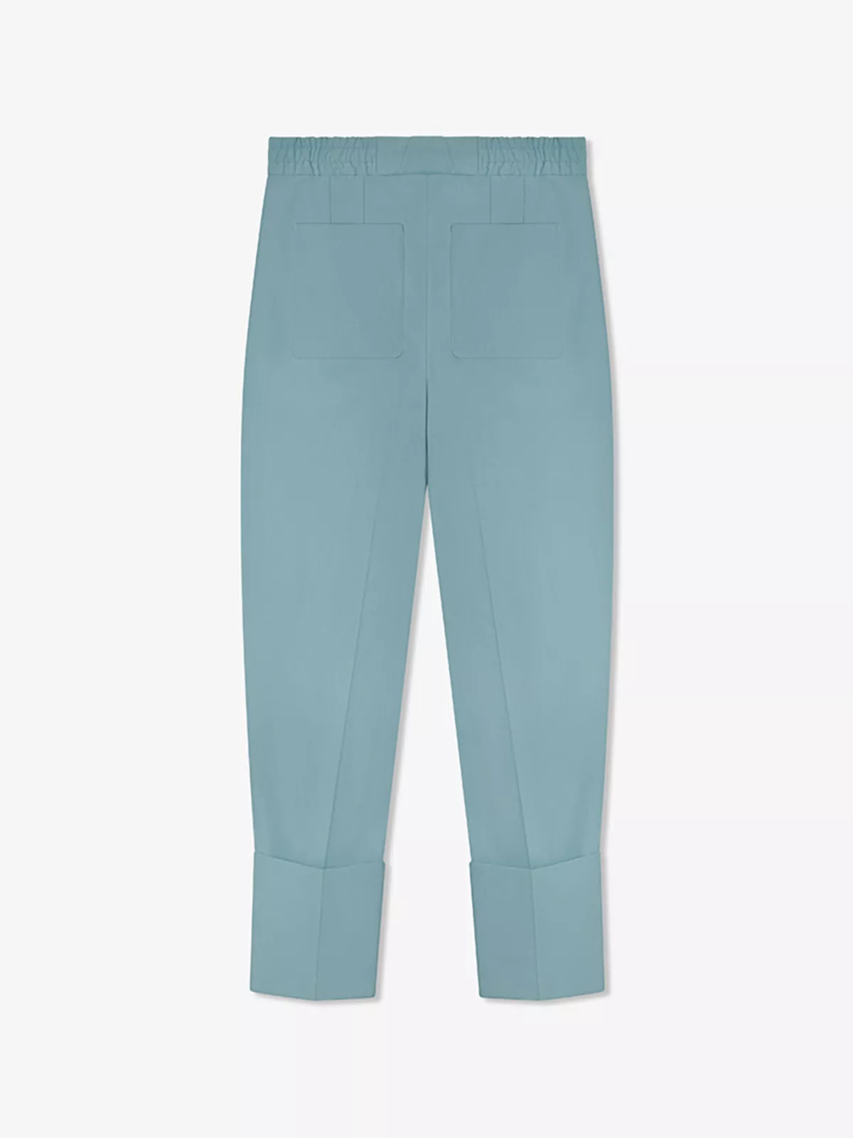 Single-pleat, ankle-length trousers in cotton poplin with 16cm maxi cuffs, patch pockets, an elasticated belt and our signature ‘A’ patch at the back.