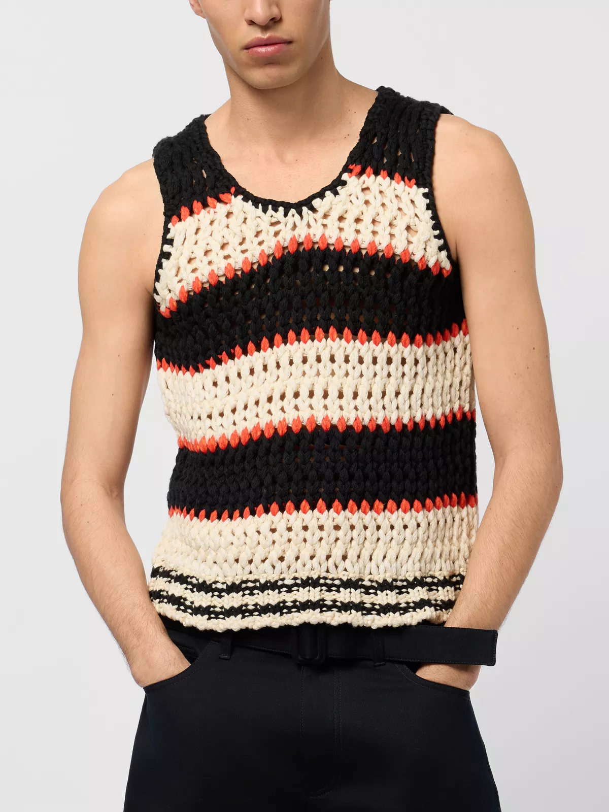 This oversized long cardigan, with its bold vertical stripes effortlessly