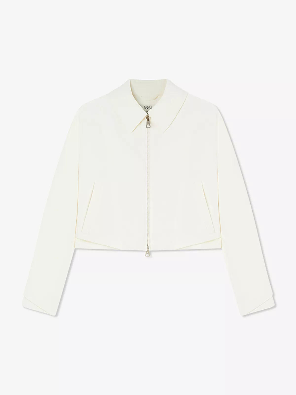 Boxy-shaped blouson crafted in a wool-and-silk blend. It fastens with a double zip puller and has our signature ‘A’ in the pleat detail at the back.