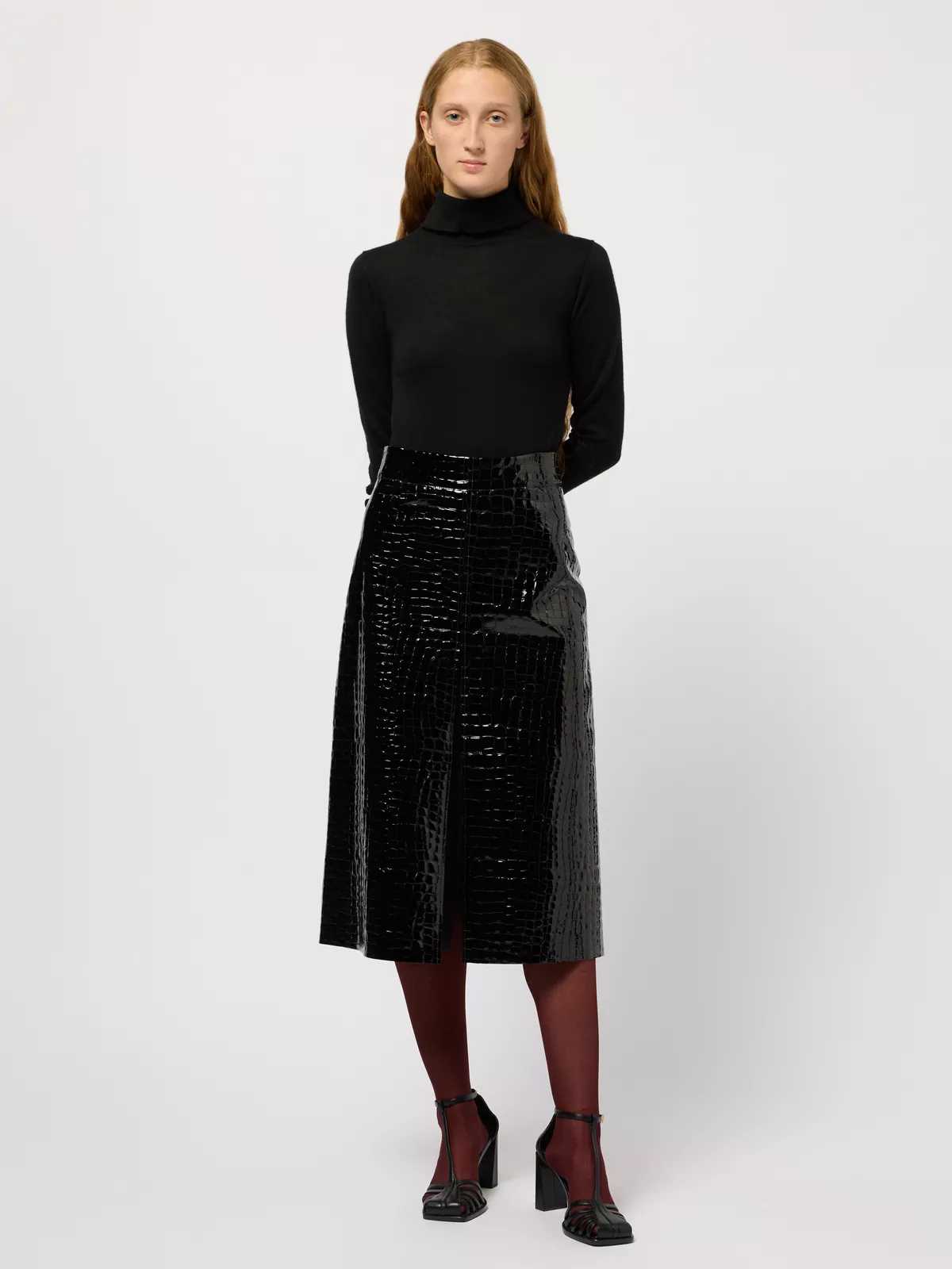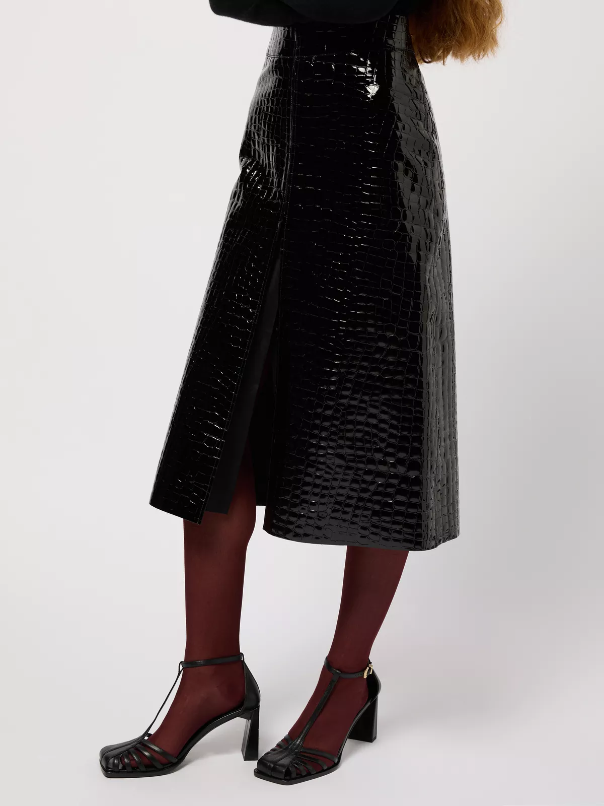 ONE OF A KIND VANITY CROCO SKIRT IN BLACK