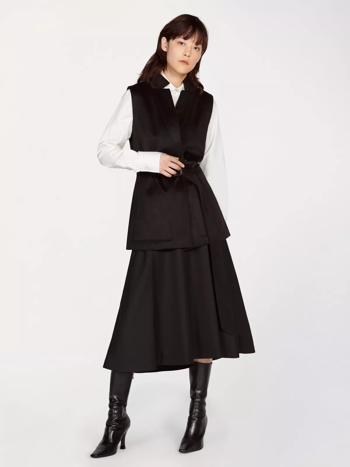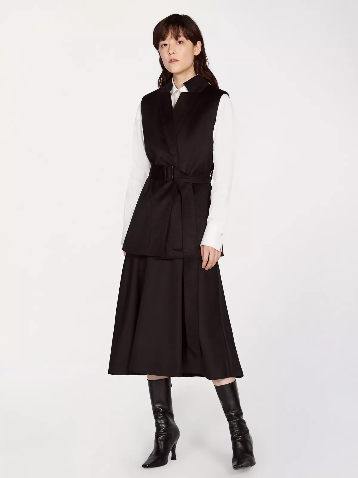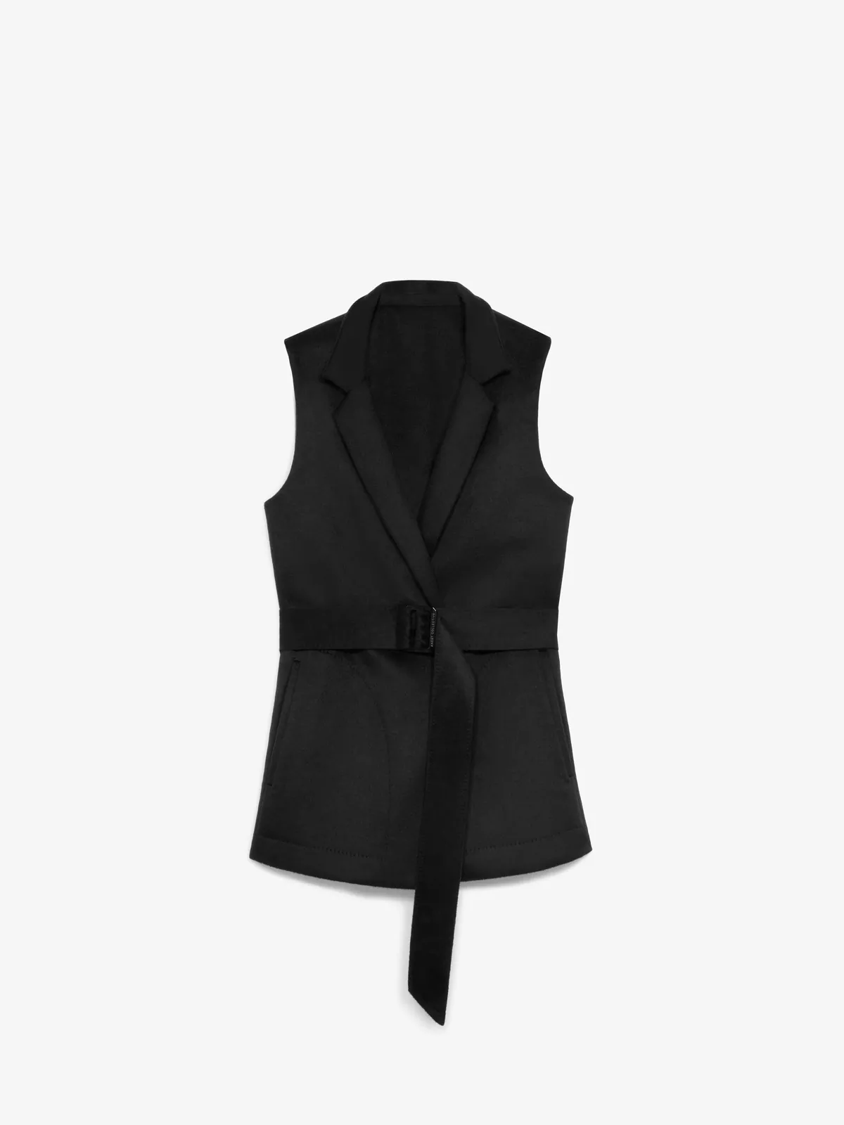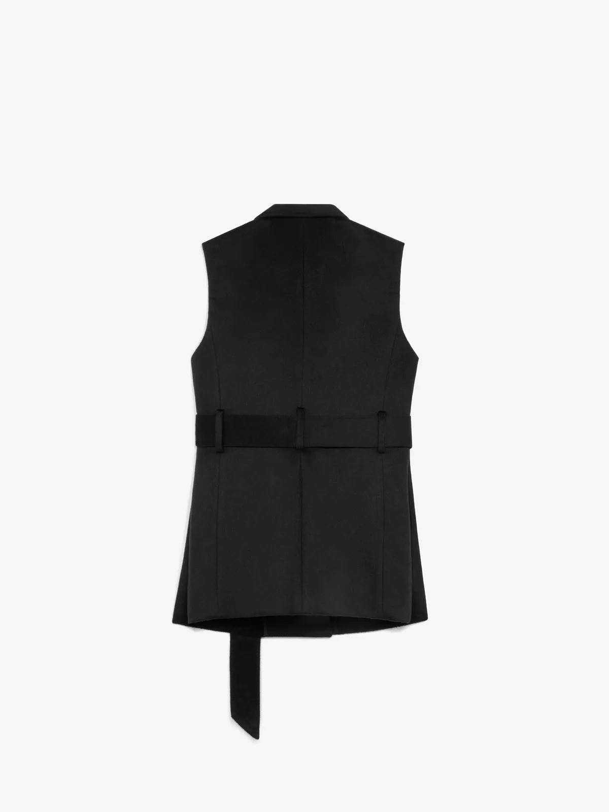 SLEEVELESS WOOL-BLEND JACKET WITH BELT IN BLACK