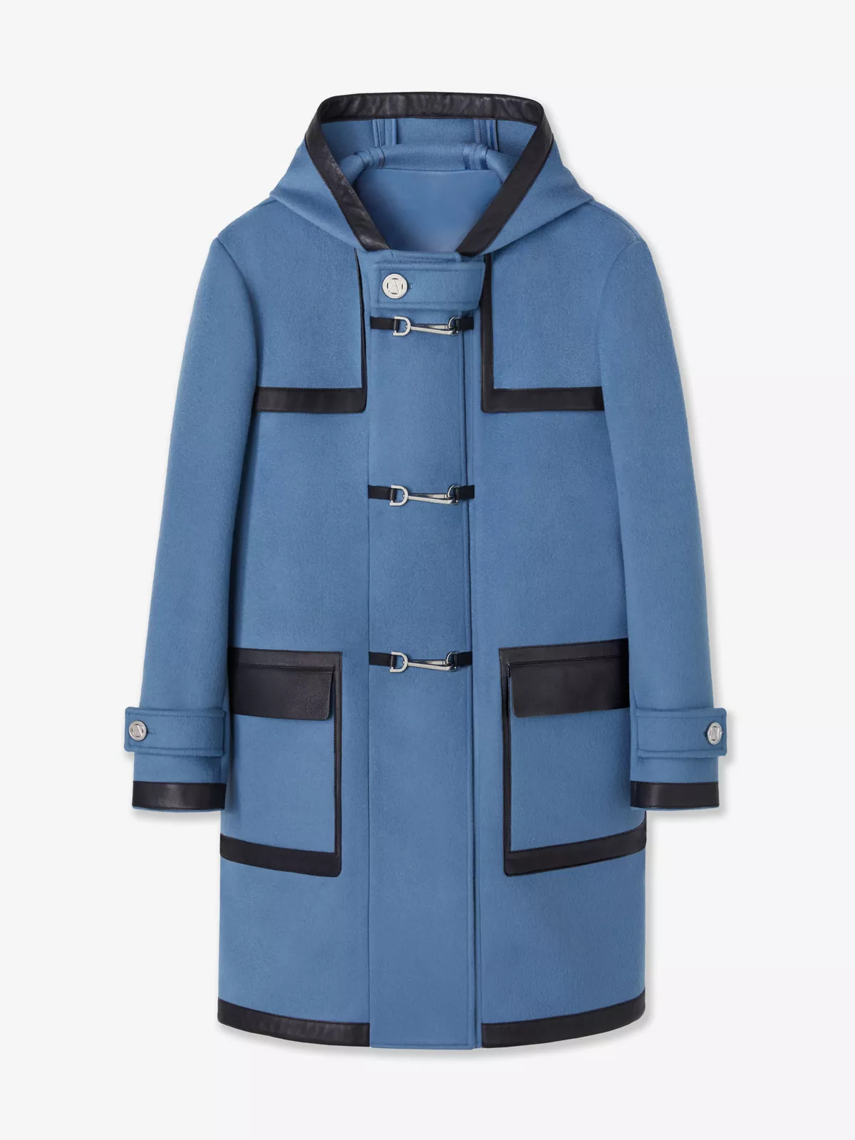 A classic duffle coat design, this style has been crafted in a heavyweight felted-wool-and-cashmere blend with grainy calfskin detailing, a large hood and front hook fastenings.