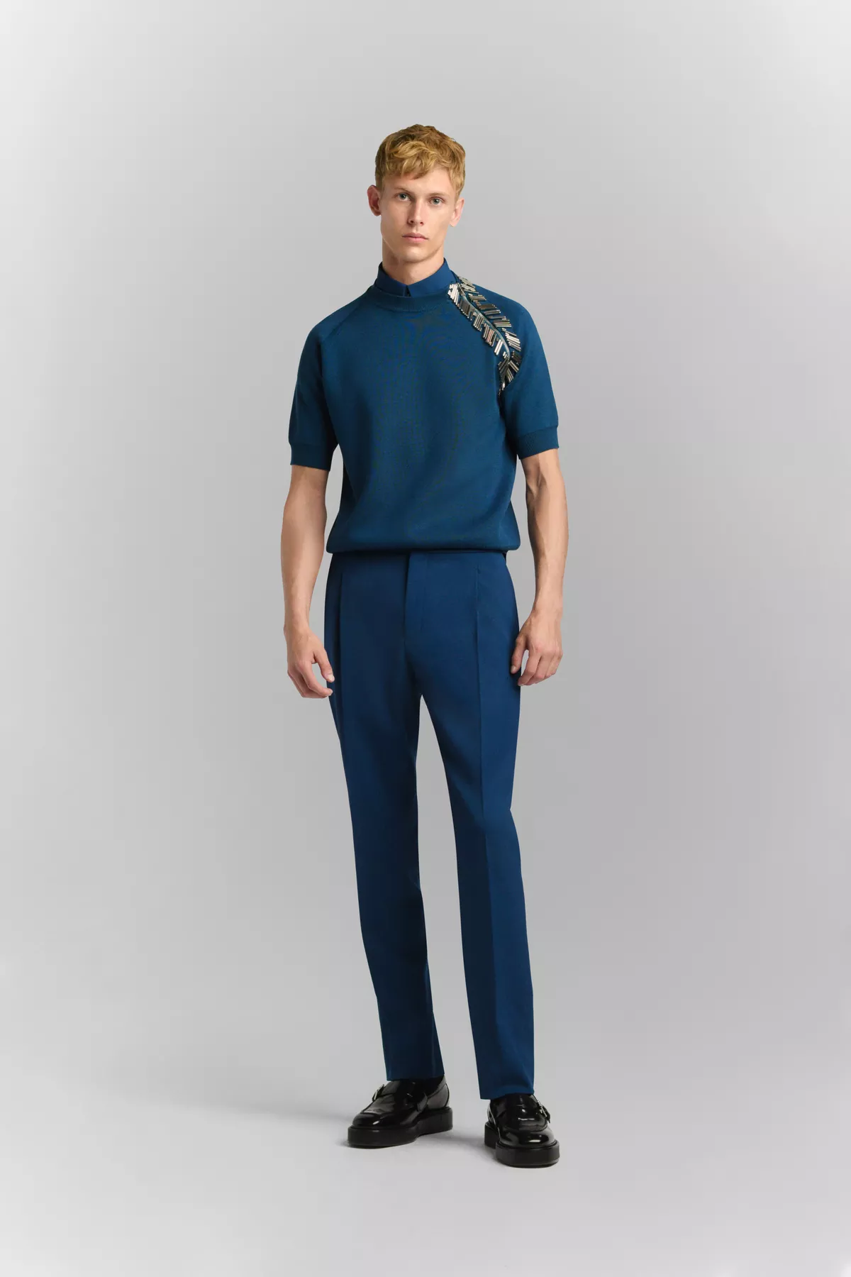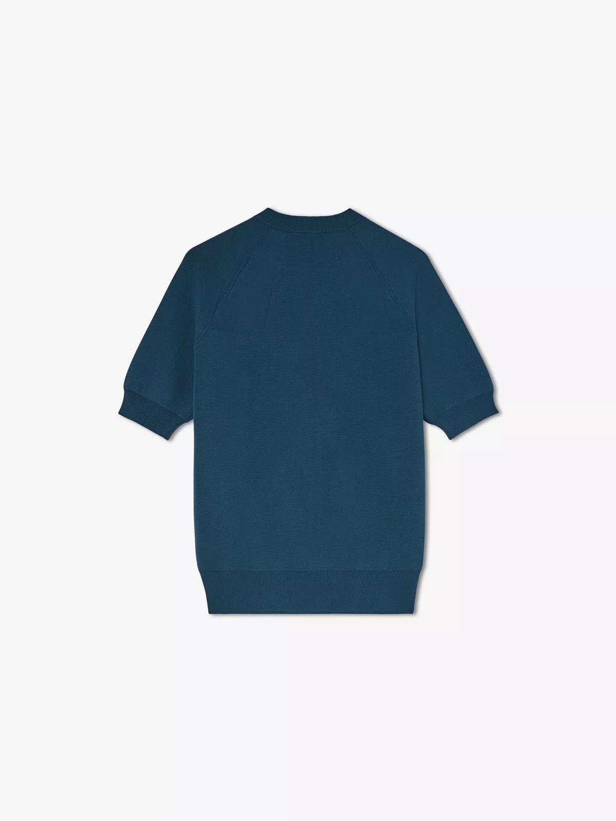 SILK COTTON KNIT TOP WITHOUT EMBROIDERY IN TORMALINA BLUE