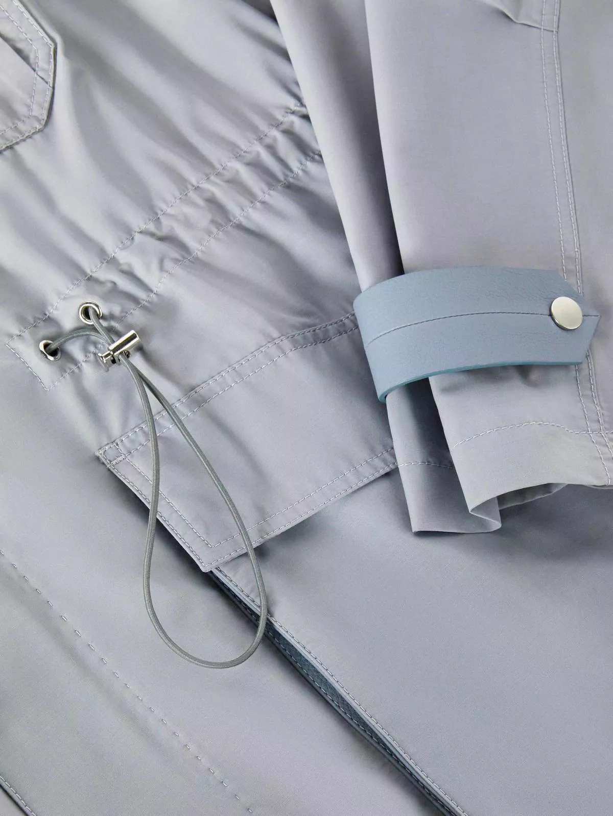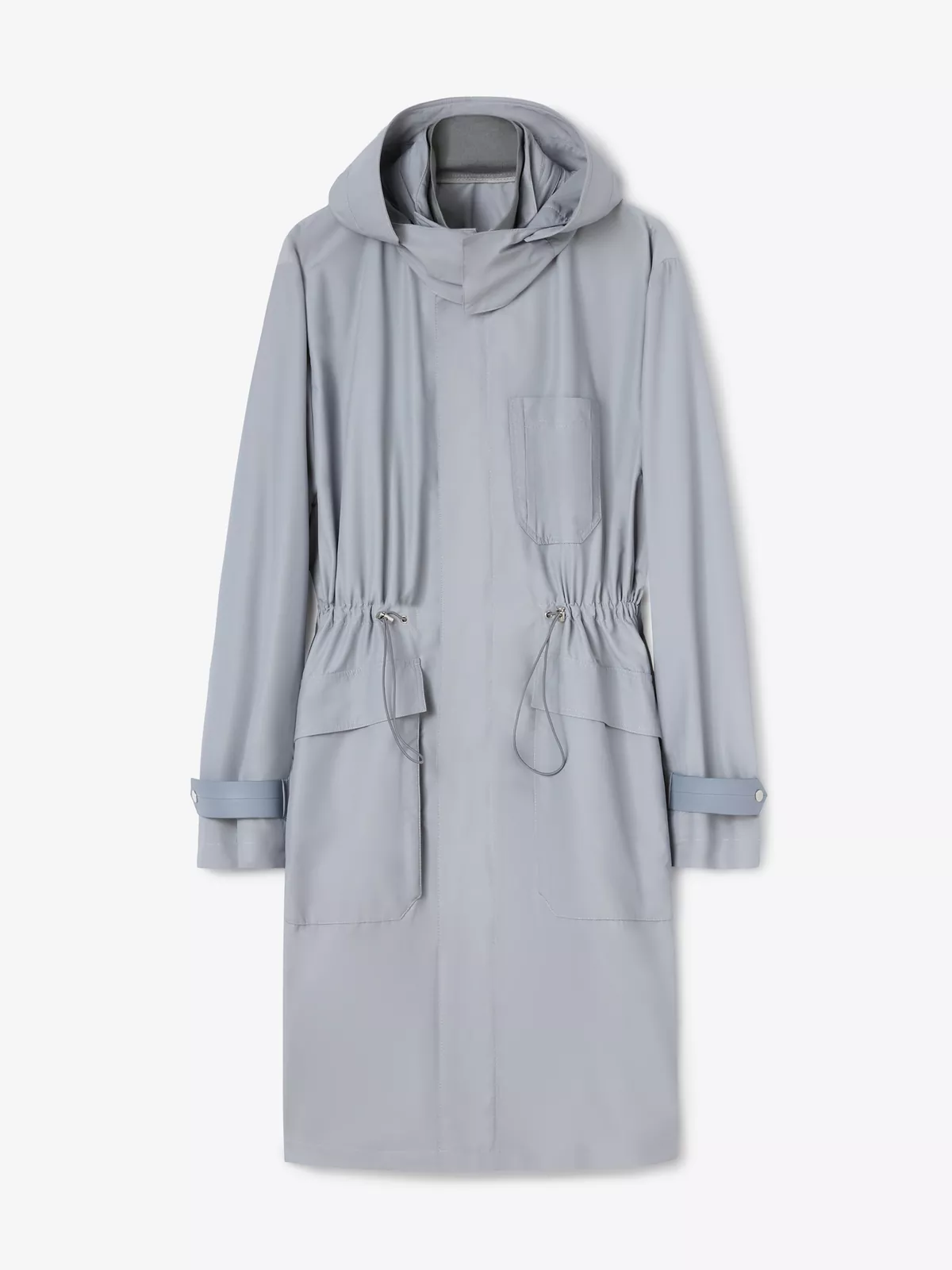灰蓝色桑蚕丝羊毛混纺派克外套
