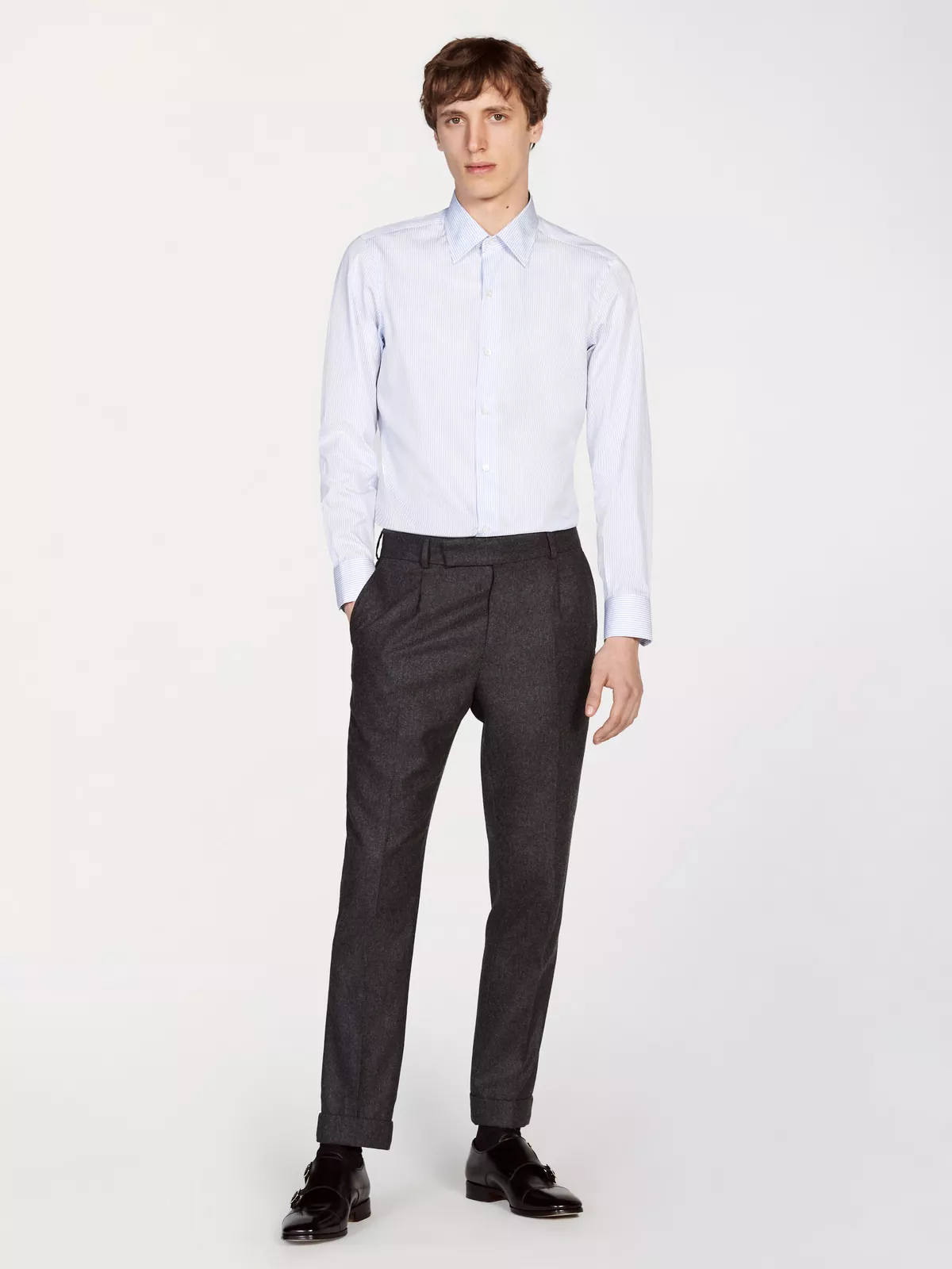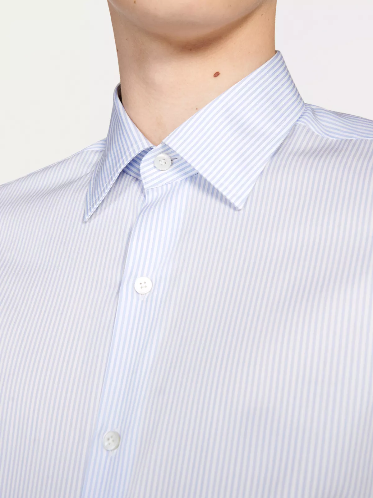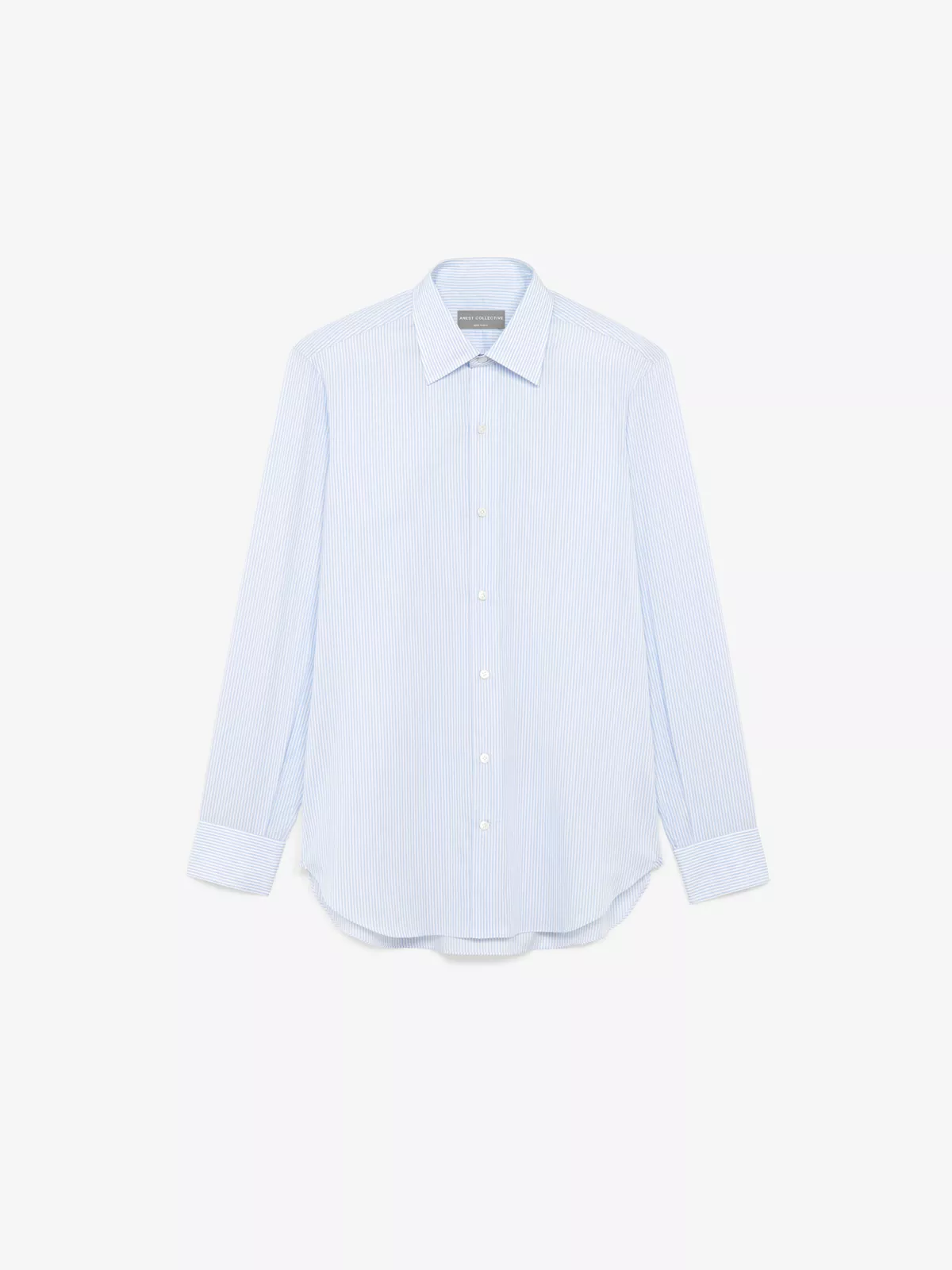 This formal shirt is made from a cotton poplin with micro stripes, classic cuffs, a pointed collar and a mother-of-pearl-buttoned placket.