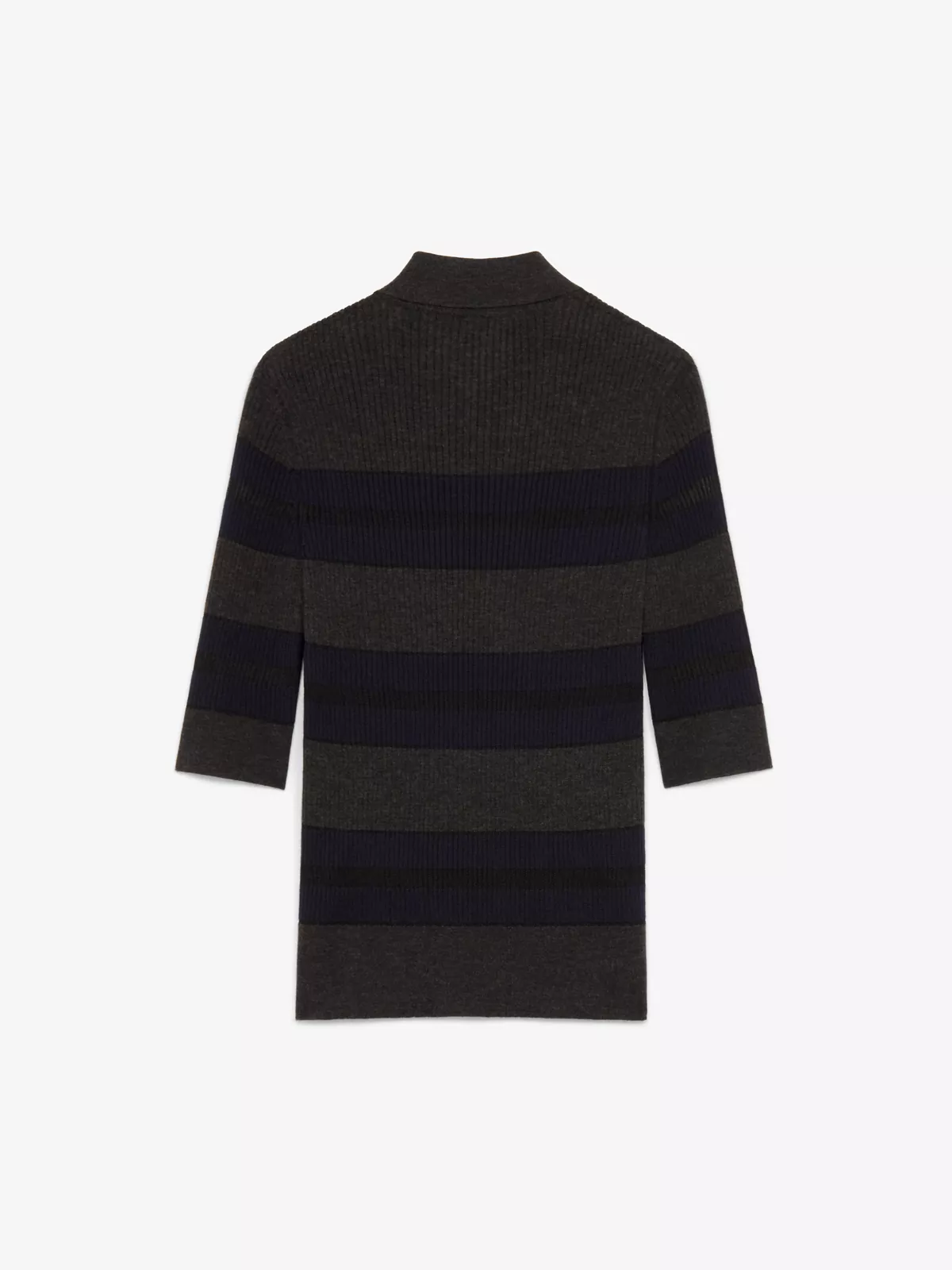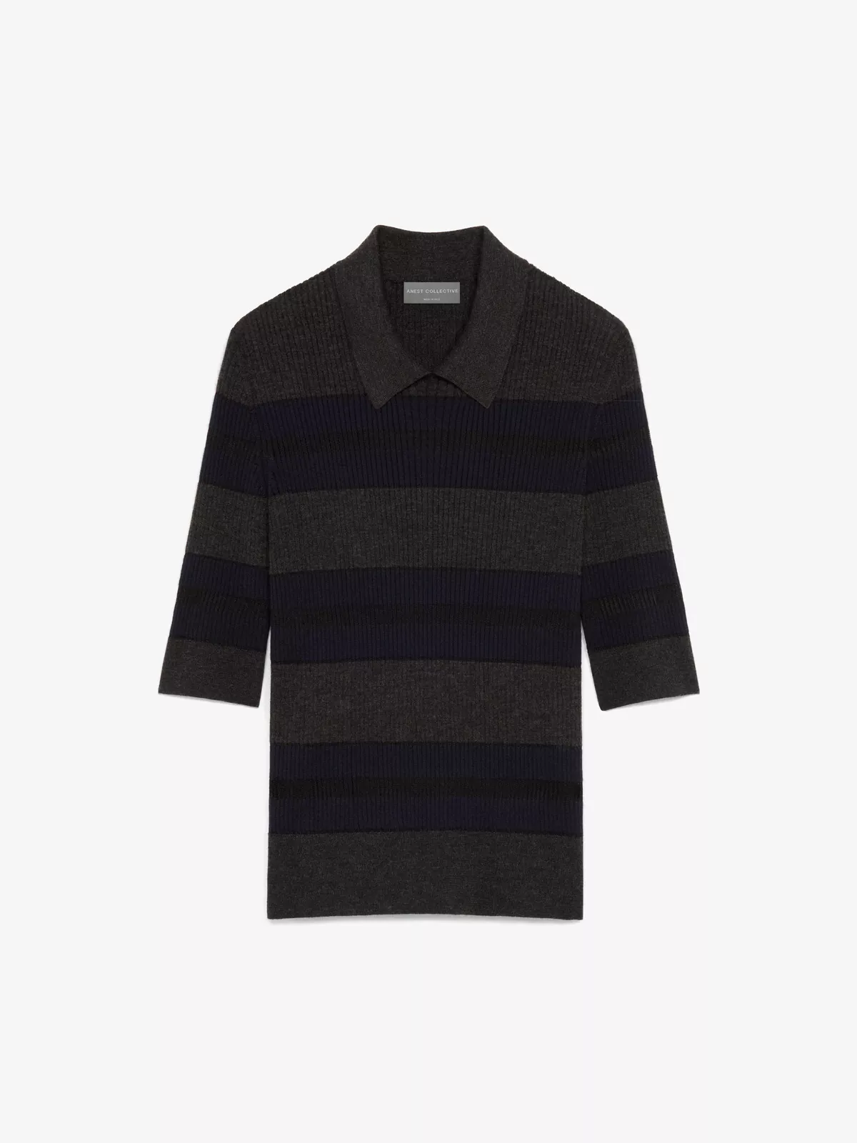 This ribbed polo top is made from a soft cashmere blend and shaped to a slim fit, with chevron-striped detailing and elbow-length sleeves.