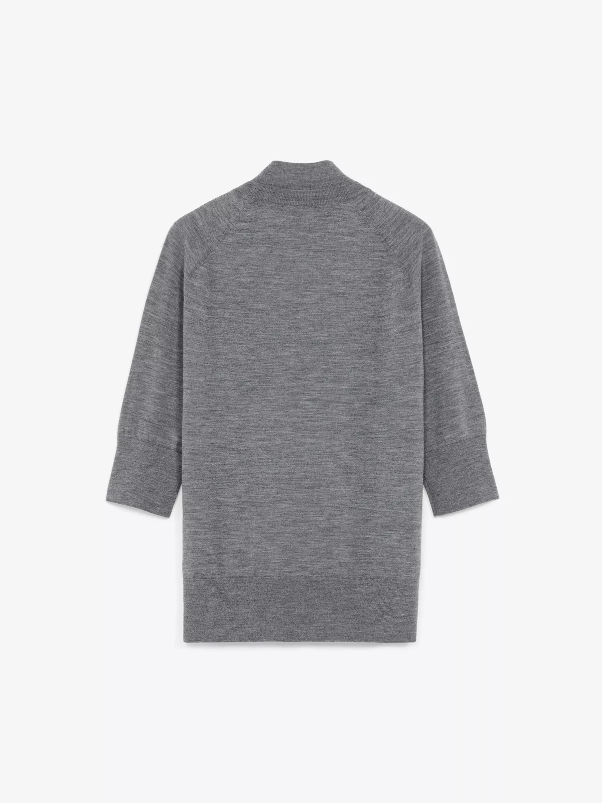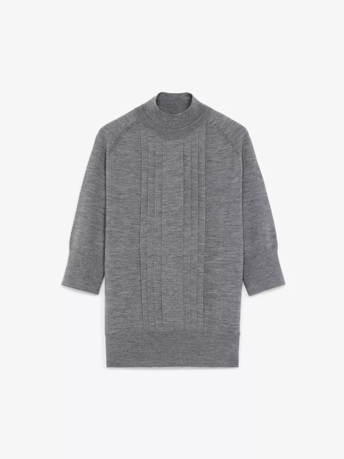 WOOL SWEATER WITH PLISSÉ FRONT PANEL IN GREY