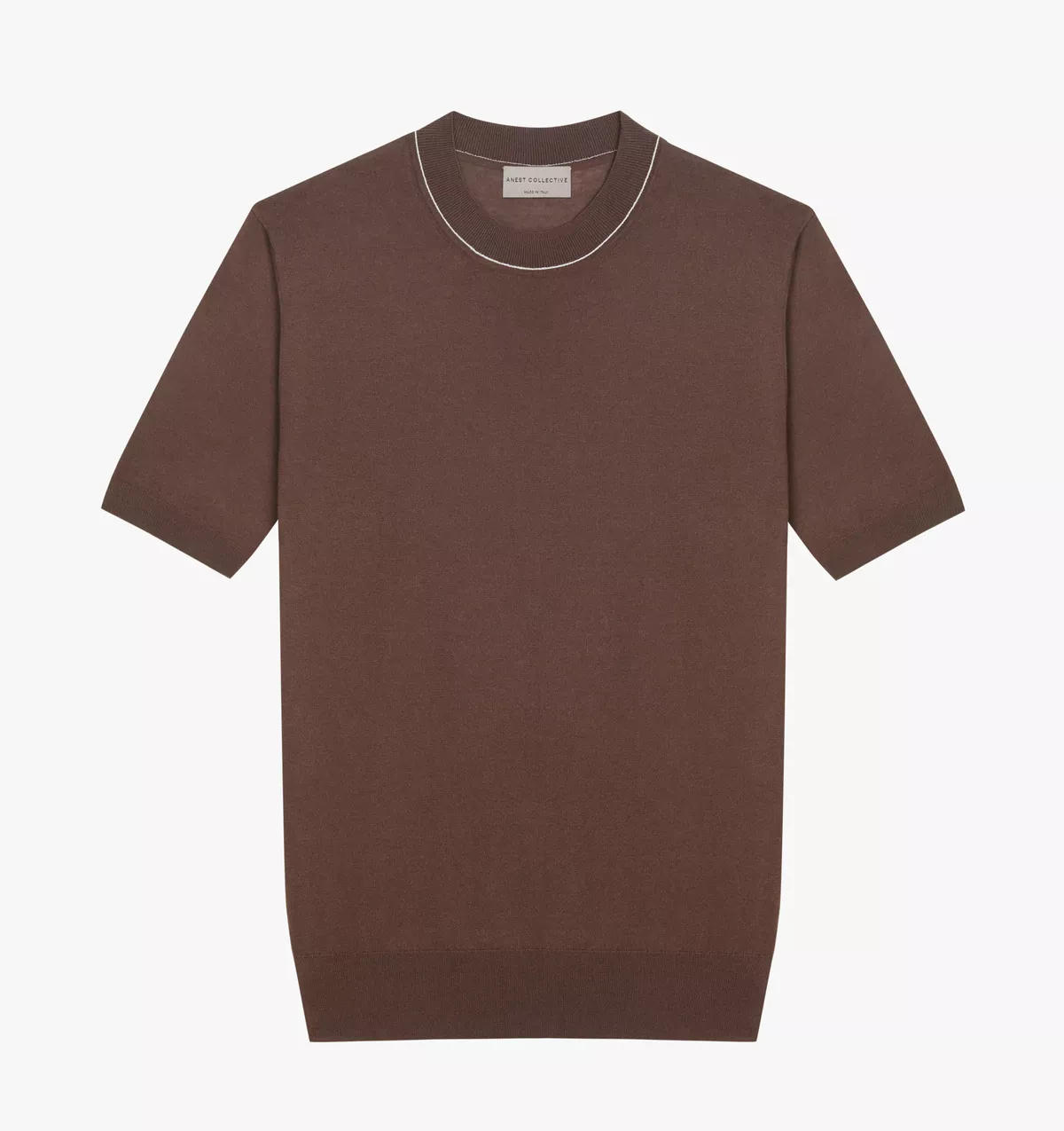 Knitted in Italy, it is finely knitted in 100% 2/60 extrafine cotton that's smooth and breathable. The dark brown shade gives a classic manlike vibe to this garment.