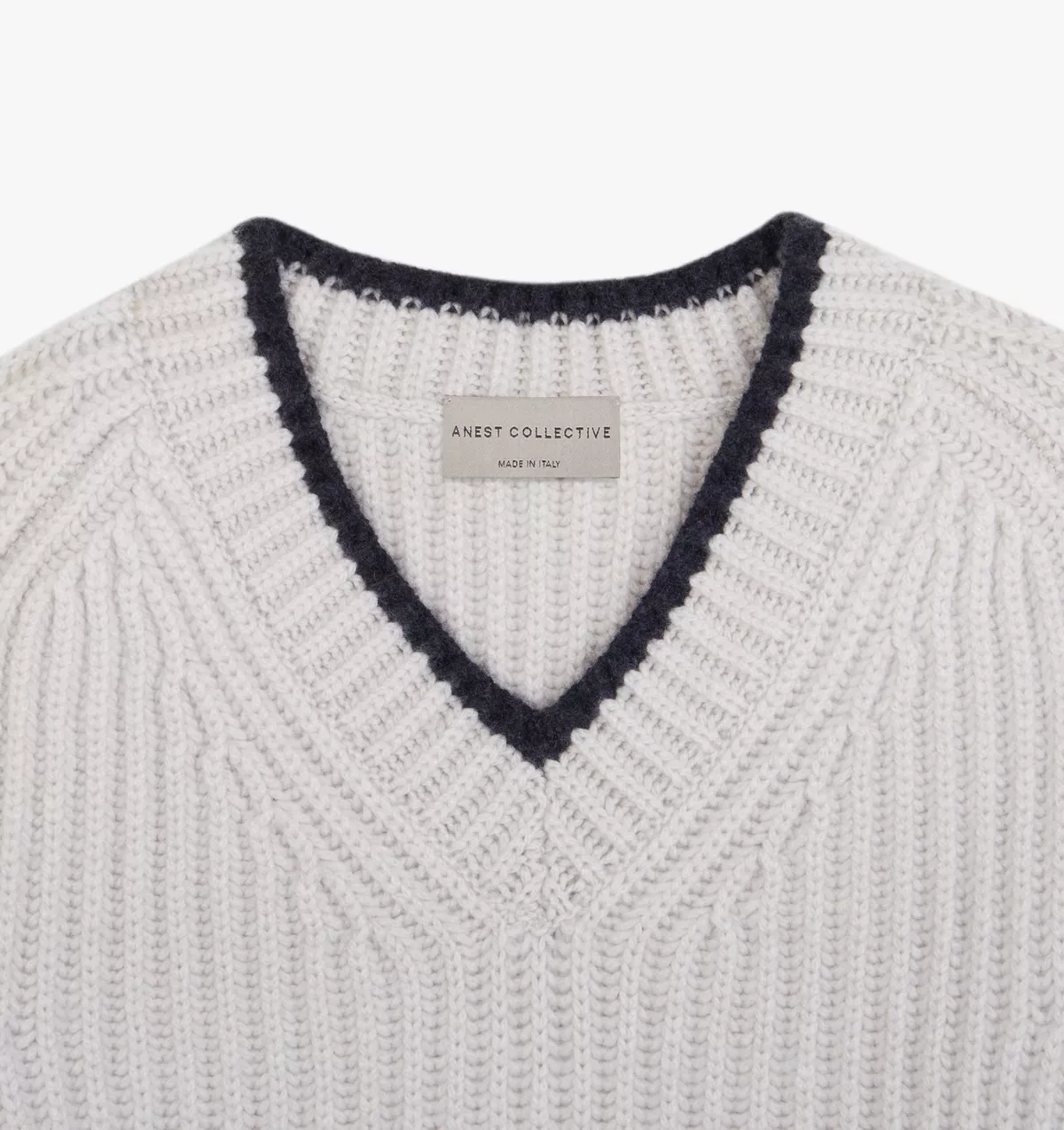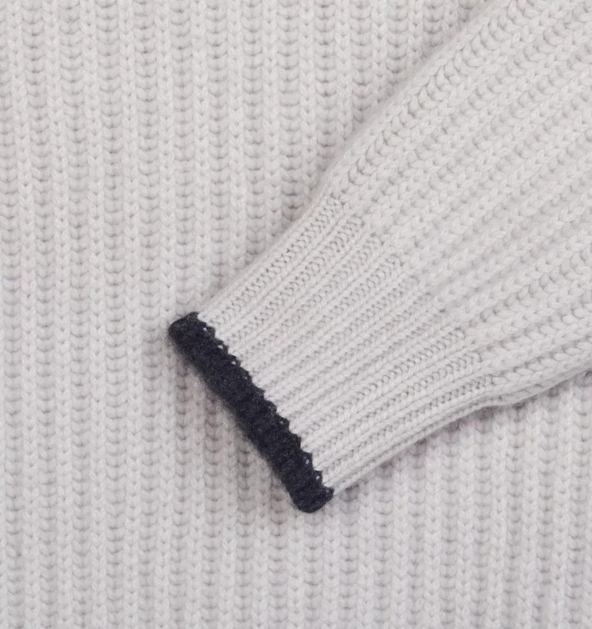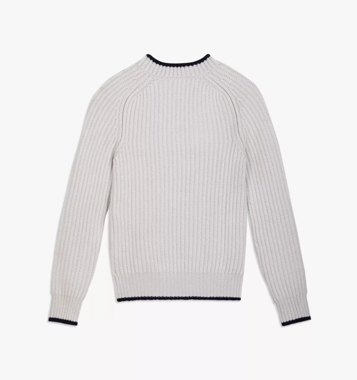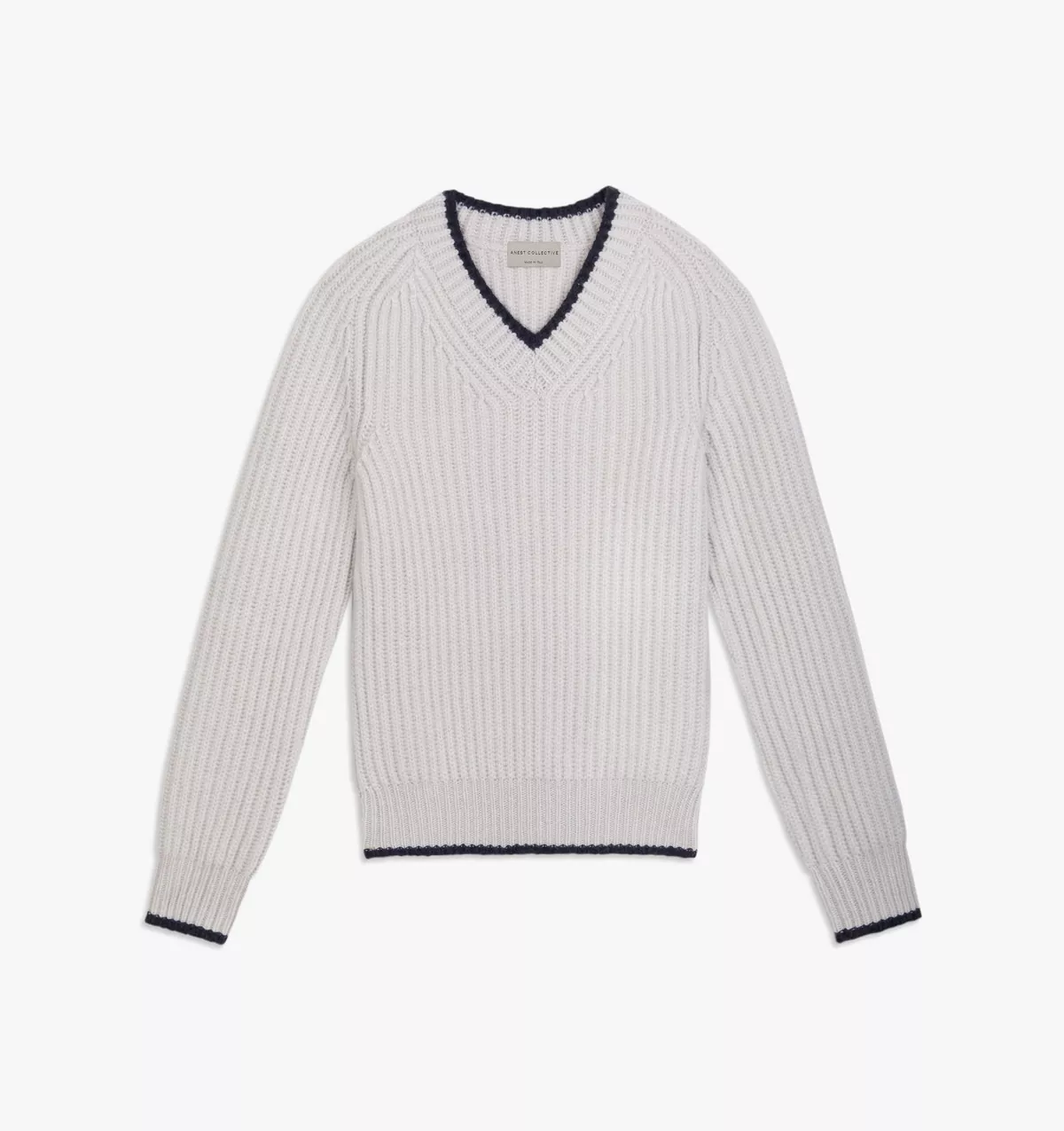This Beige V-Neck sweater is knitted in a fisherman rib in pure cashmere for the ultimate warmth and comfort. It features an in-contrast trim on neck, hem and cuffs.