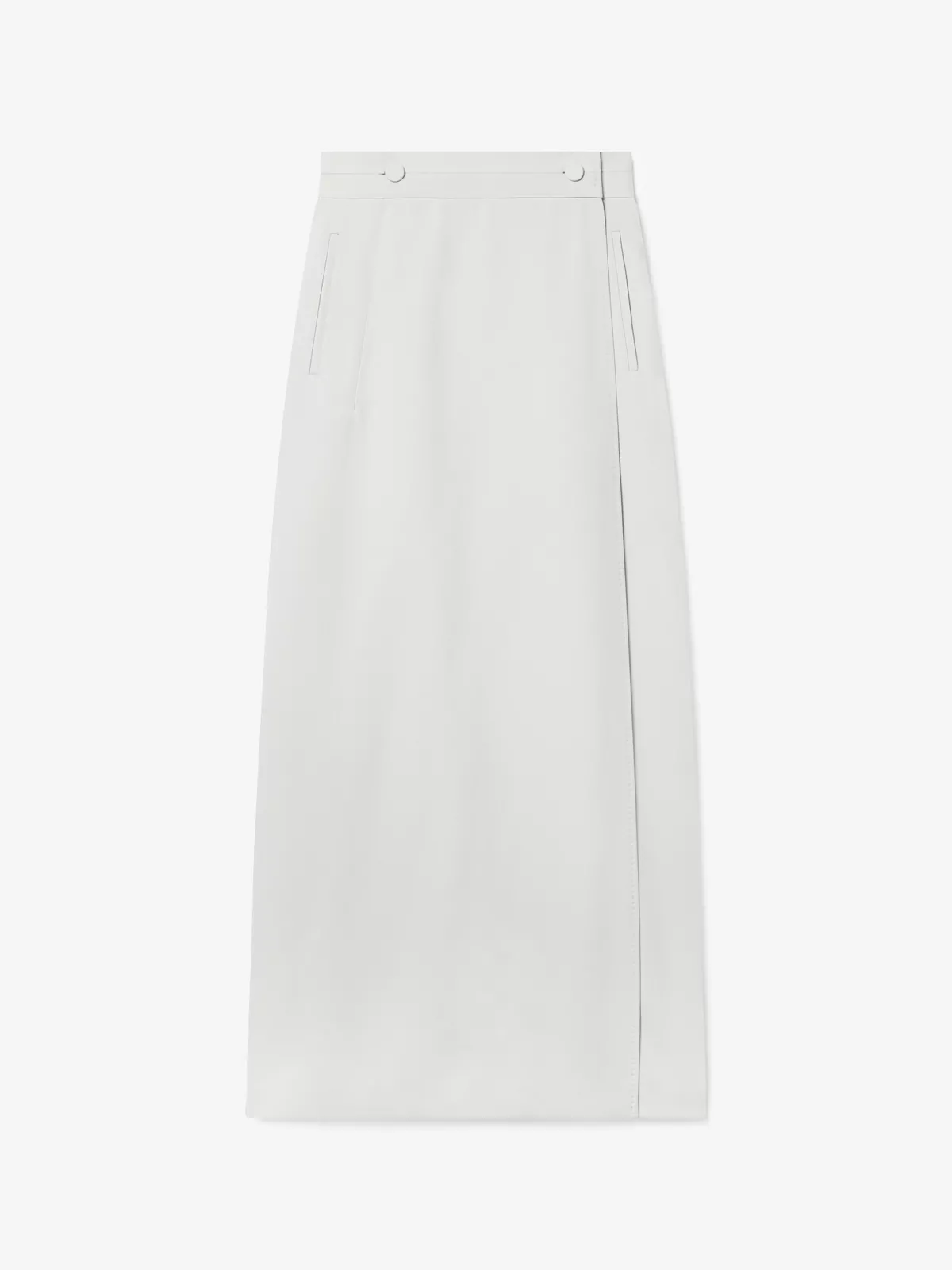 Cut from a wool-and-mohair blend in a figure-flattering pencil silhouette and high waist, this elegant wrap skirt has tonal saddle-stitching details and an adjustable belt with self-covered buttons.