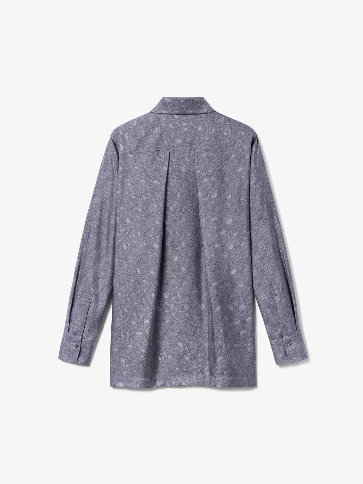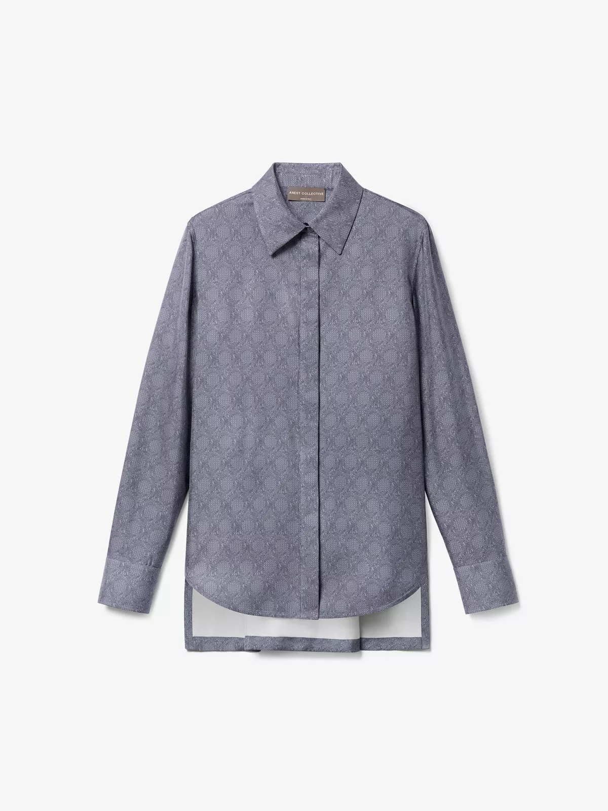 A modern and versatile style, this shirt is made from a printed silk and cut for a straight fit with a concealed placket, cuffs and a high under-collar with mother-of-pearl buttons.