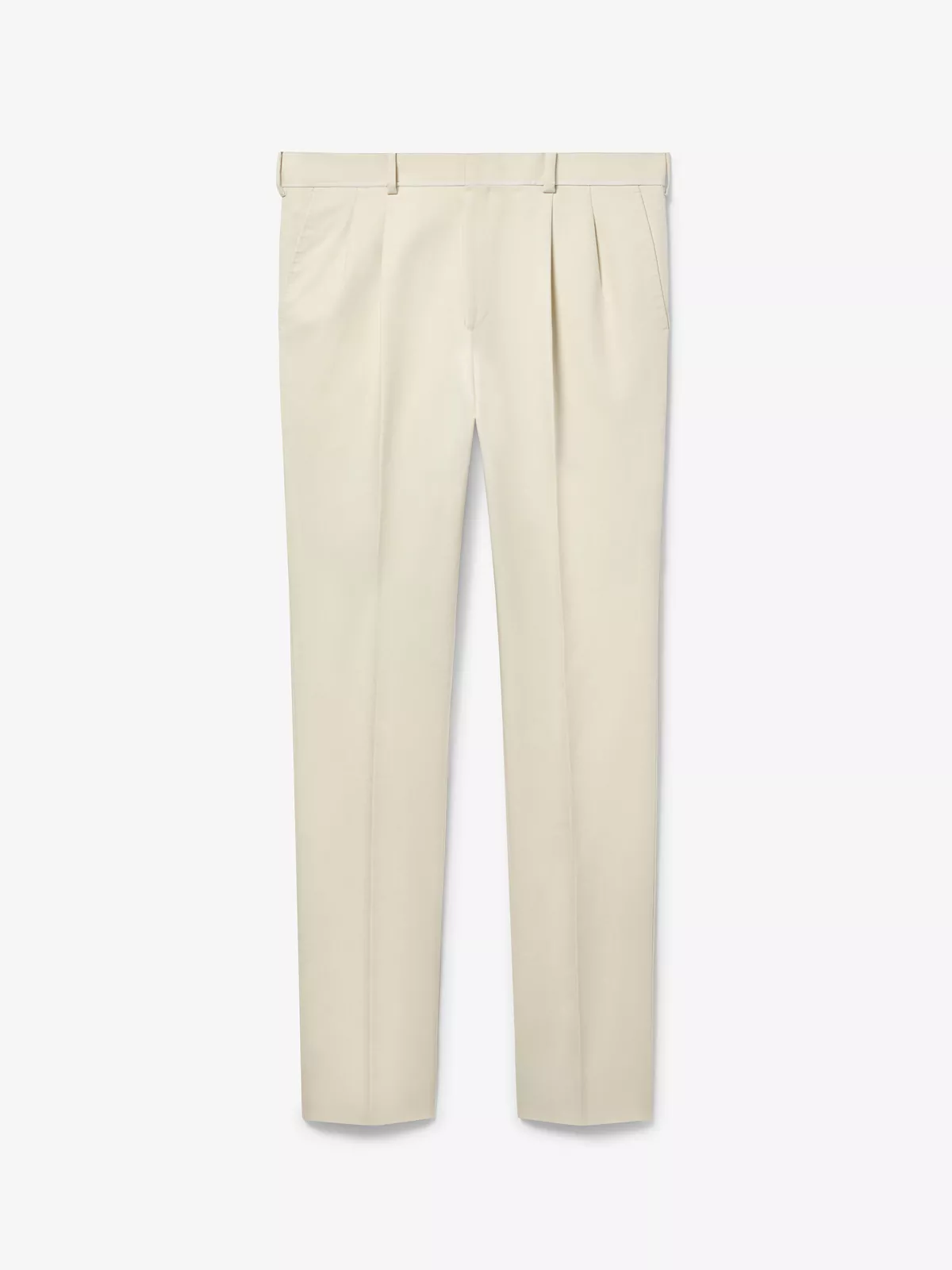 Crafted from a double high-density cotton, these straight-leg trousers have double pleats, a belt with tonal grosgrain detailing and a buckle closure, and come unhemmed for easy tailoring.