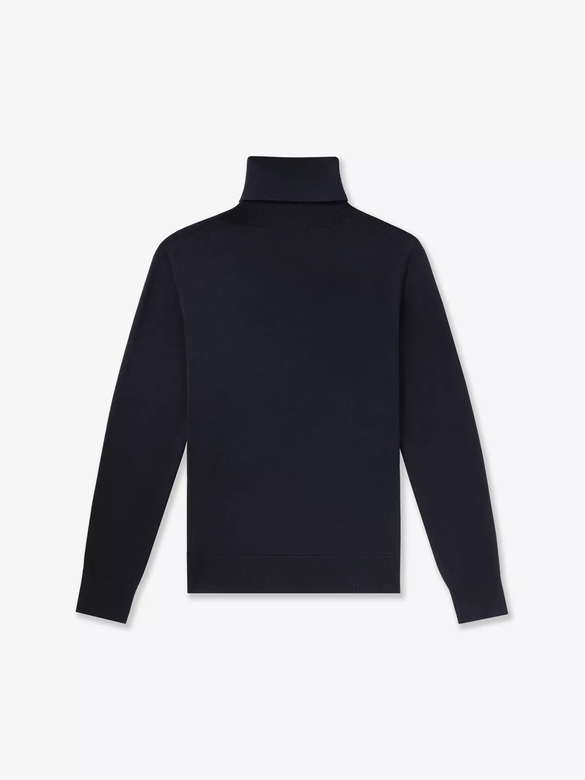 Revisited for FW22, this classic fine-gauge turtleneck top is made from a lightweight wool-silk-and-cashmere blend with rib-stitched details.