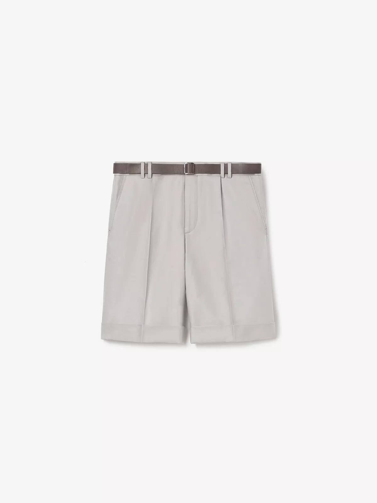 Cut from a luxury cotton, these smart shorts have a leather belt, a zip-front closure and come hemmed with a slight turn-up.