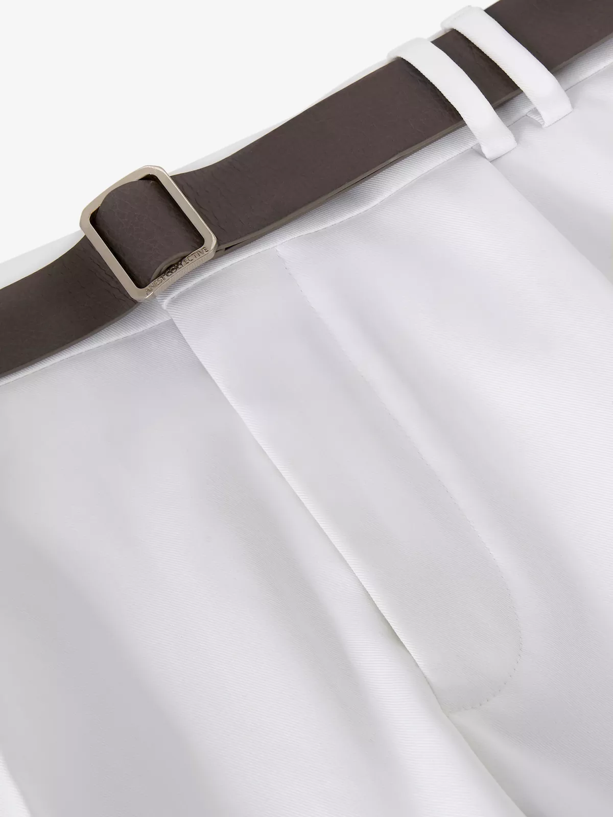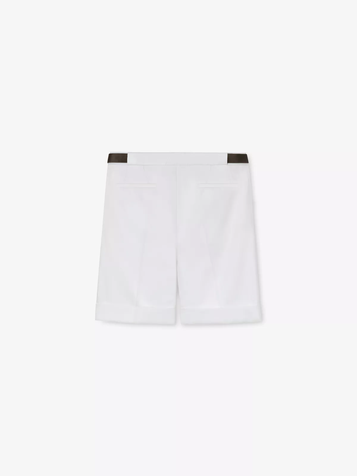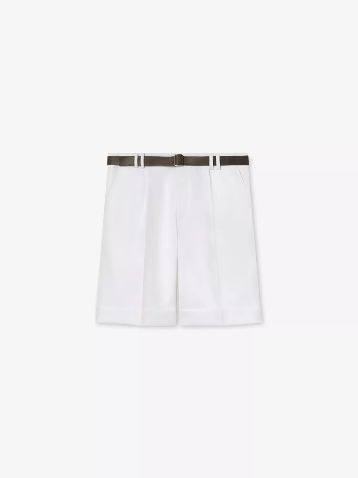 Cut from a luxury cotton, these smart shorts have a leather belt, a zip-front closure and come hemmed with a slight turn-up.