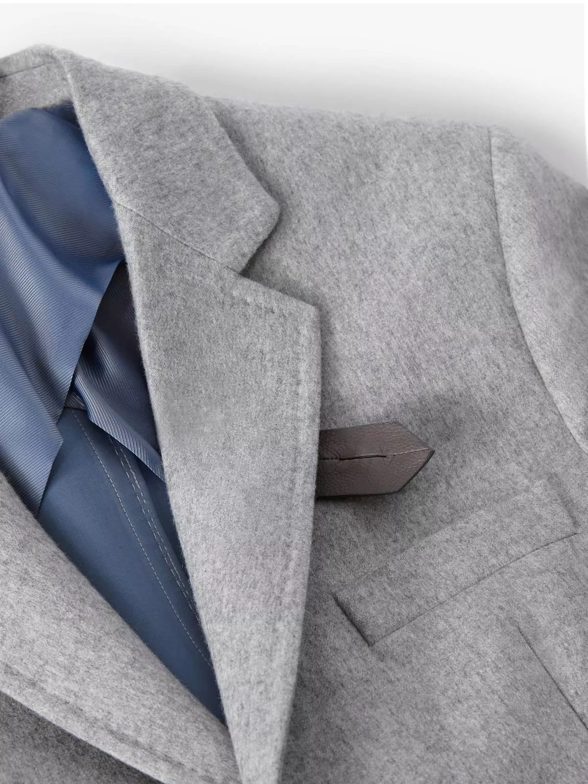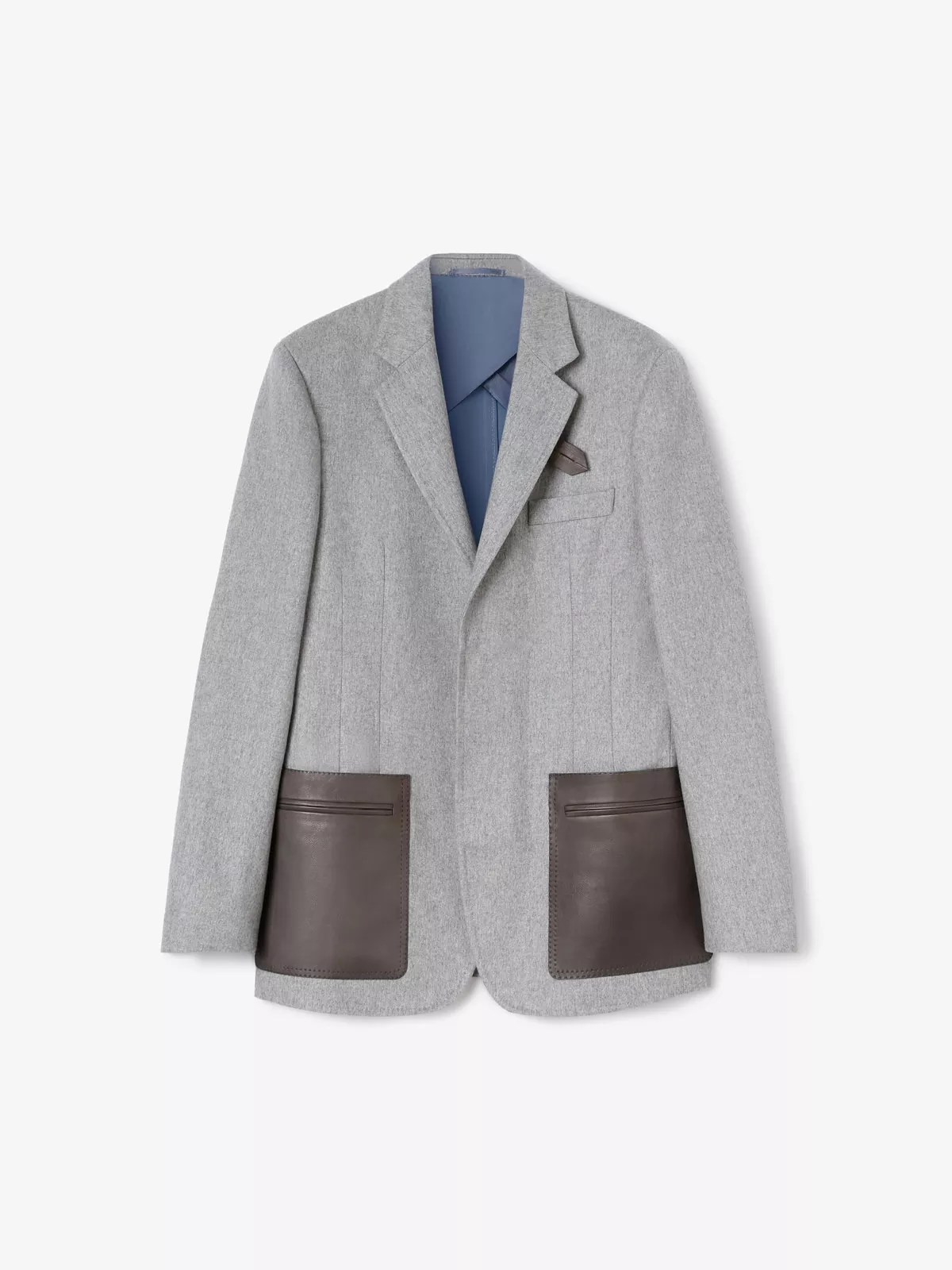 Made from a soft cashmere blend with contrasting detailing on the notch lapel and patch pockets, this slim-fit jacket has a single-breasted silhouette with slimming saddle-stitch darting and a concealed three-button closure.