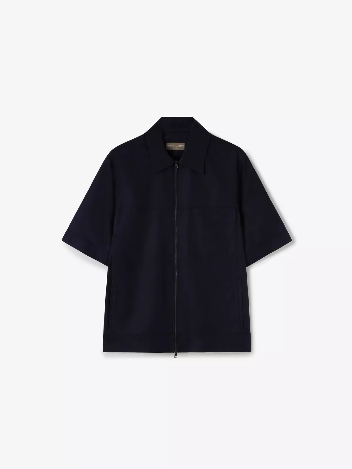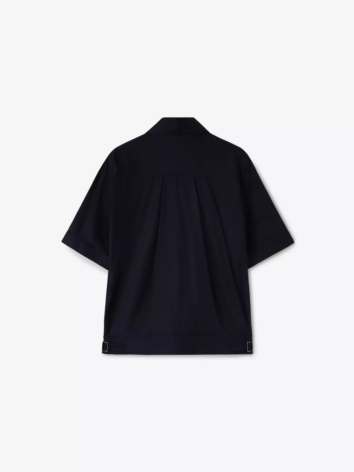 This smart short-sleeved shirt has been cut from cotton with side and front pockets, a front zip and adjustable straps on the reverse.