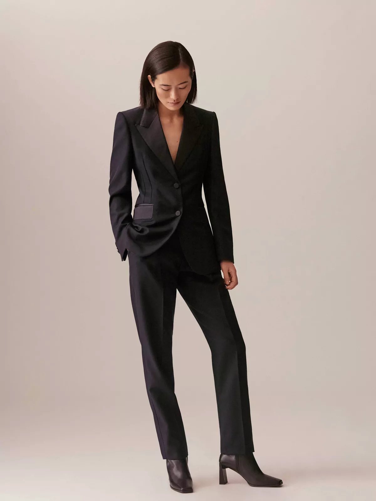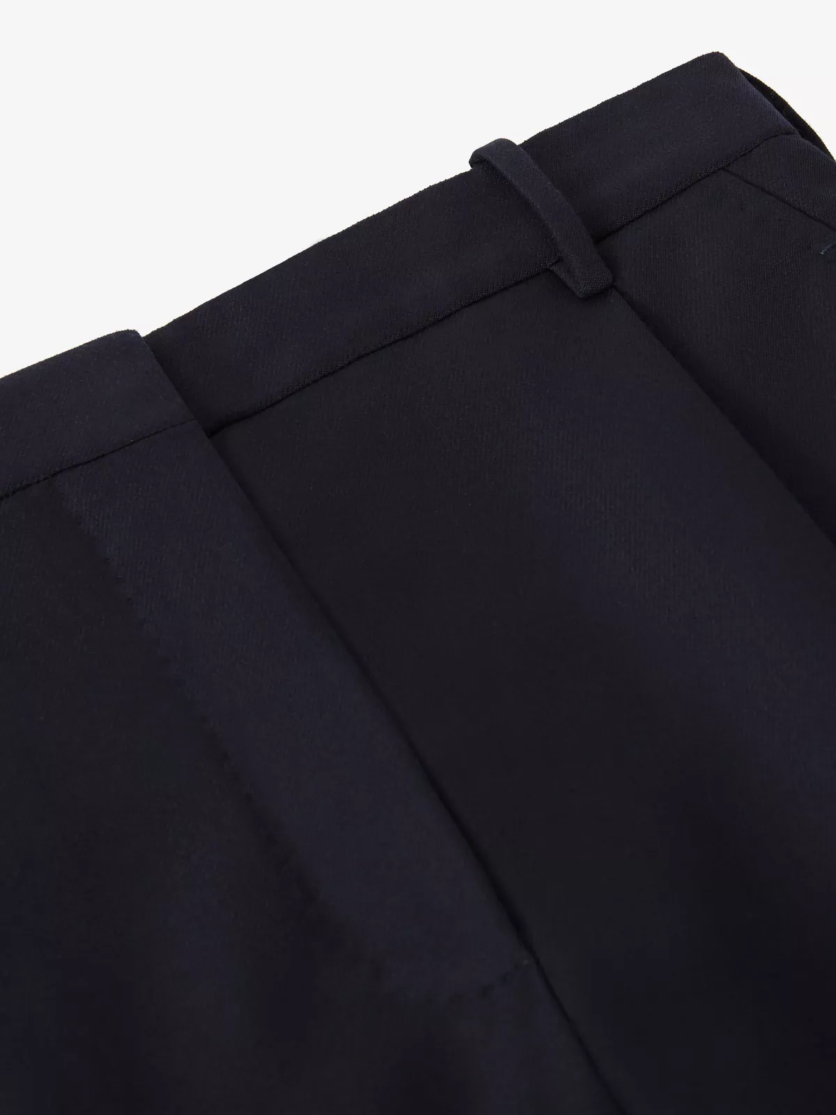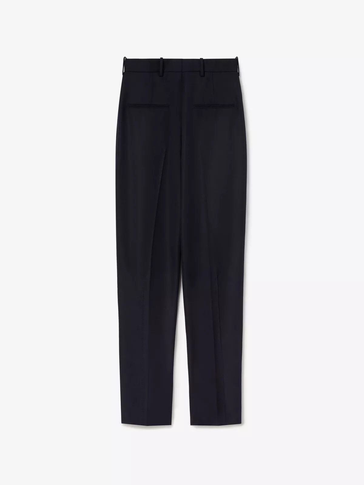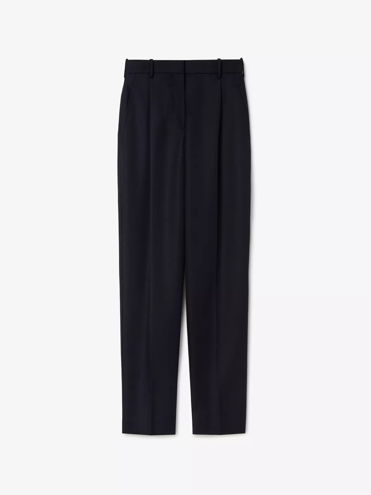 These classic high-waisted trousers are cut for a straight fit from a soft wool blend in a relaxed silhouette with soft front pleats, discreet pockets and a satin waistband.