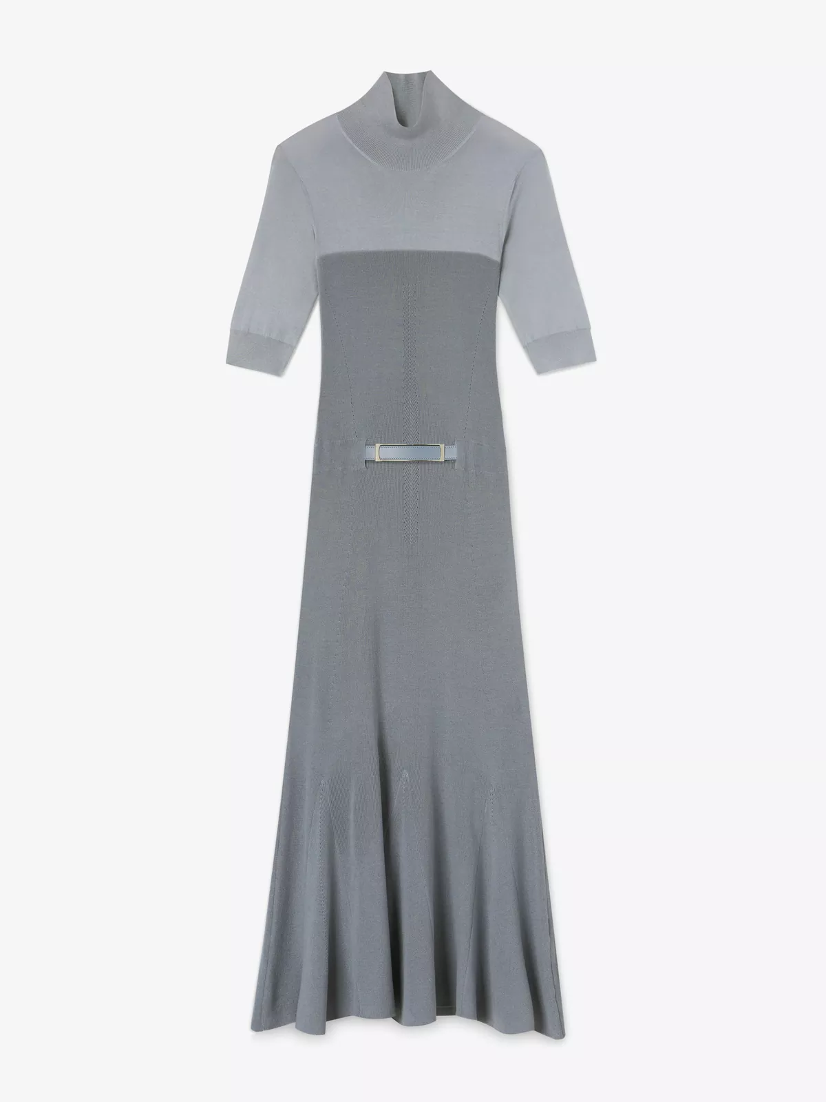 Made from a silk-and-cotton knit, this dress is fitted through the bodice with an integrated waist-cinching belt before falling to a floaty skirt.