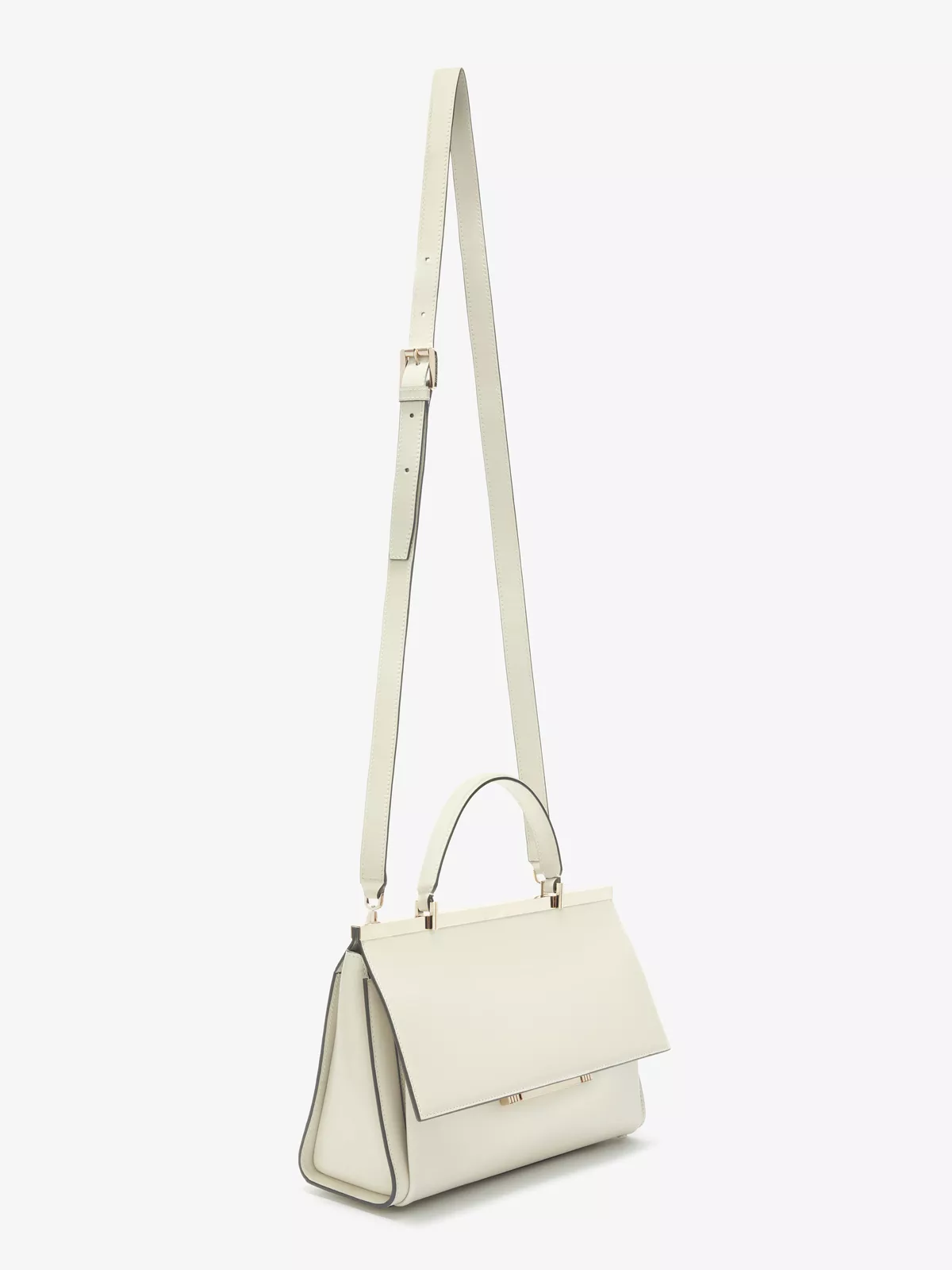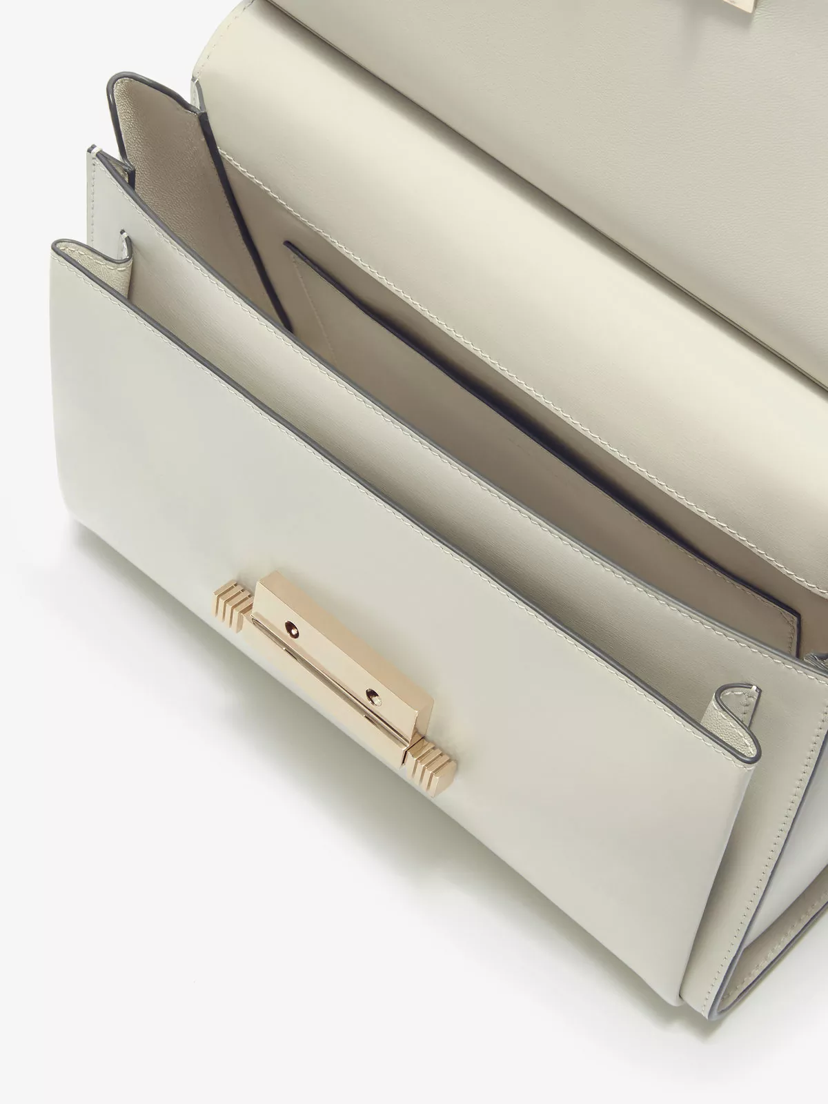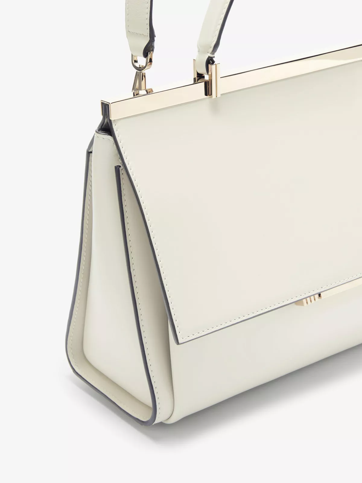 This top-handle handbag is made from an exquisite leather and embellished with a handmade polished jewellery closure.