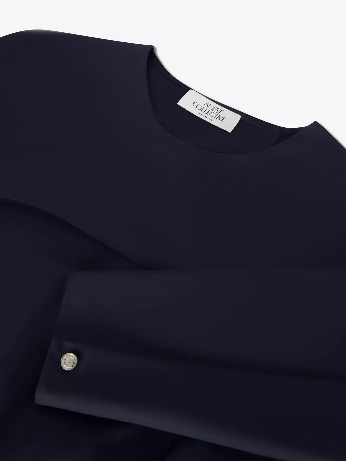 Crafted in a pure cotton poplin, this long tunic feminine dress has a folded front detail