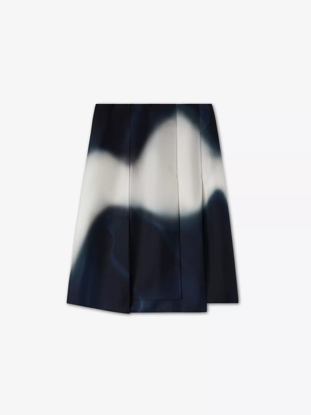 This multi Panel knee lenght skirt is crafted from a silk twill with a placed asbtract noise print.