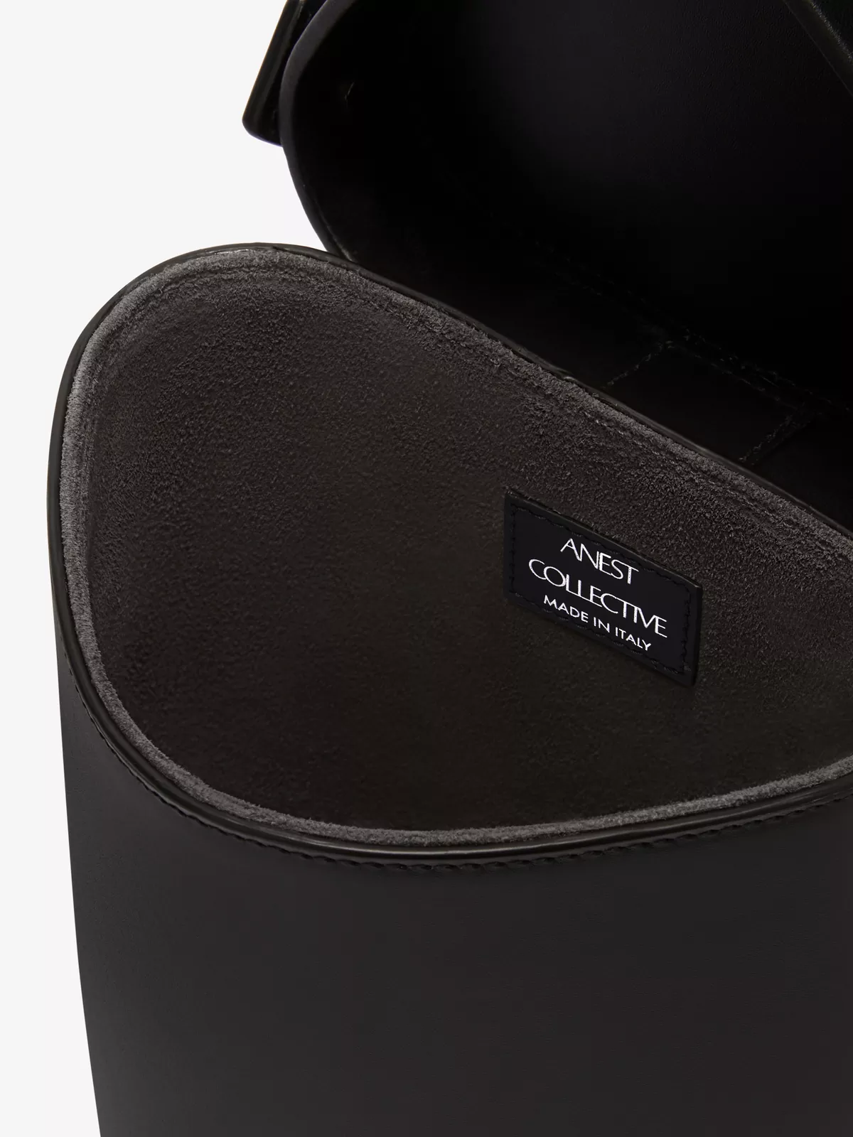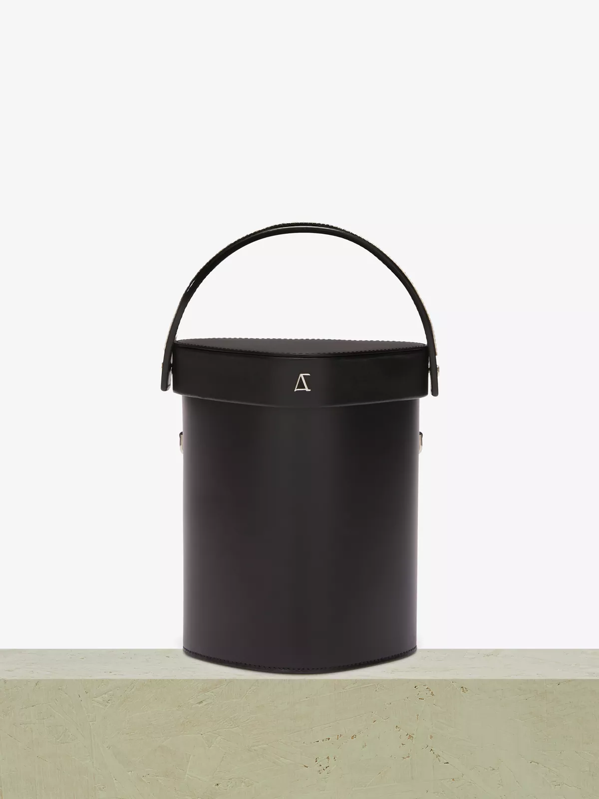 Box bag in smooth calf with removable crossbody strap and embroidered handle.