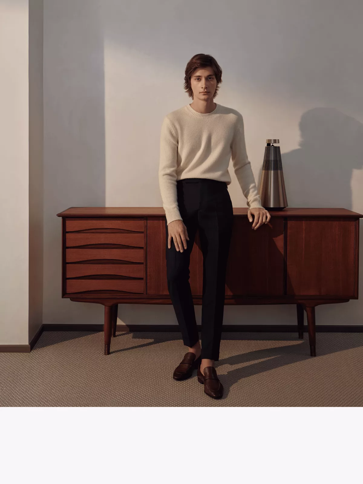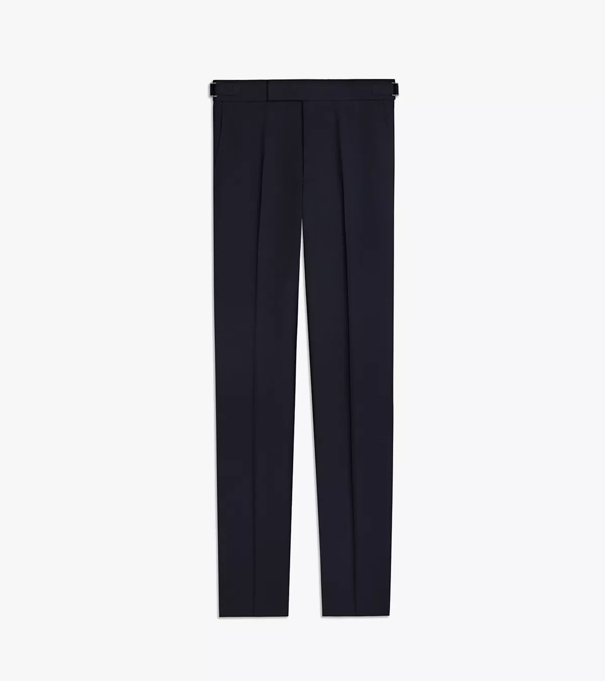 Crafted of Italian pure wool.Essential to a smart look in this contemporary tailored pair. Signature piece features in waist tabs for personal adjustment