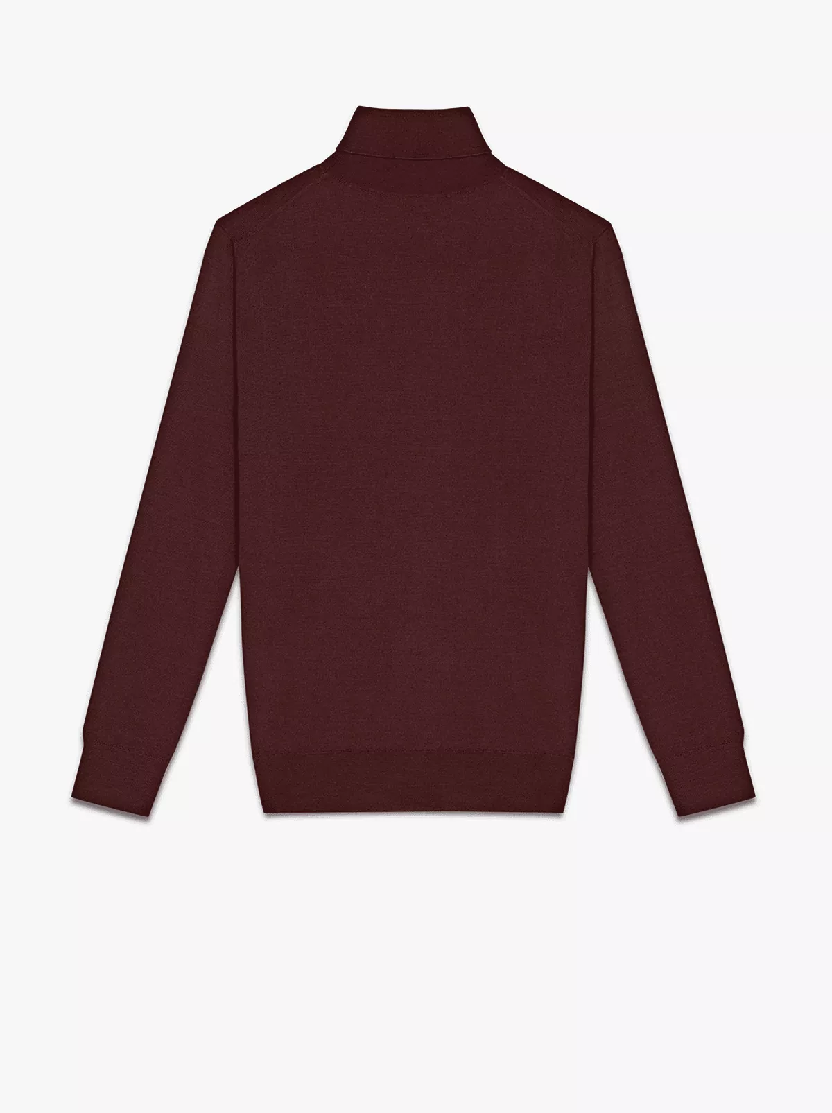 Spun in Italian super fine merino wool, a fibre features in unparalleled softness. The long-lasting piece is designed with Roll neck and slim cut.