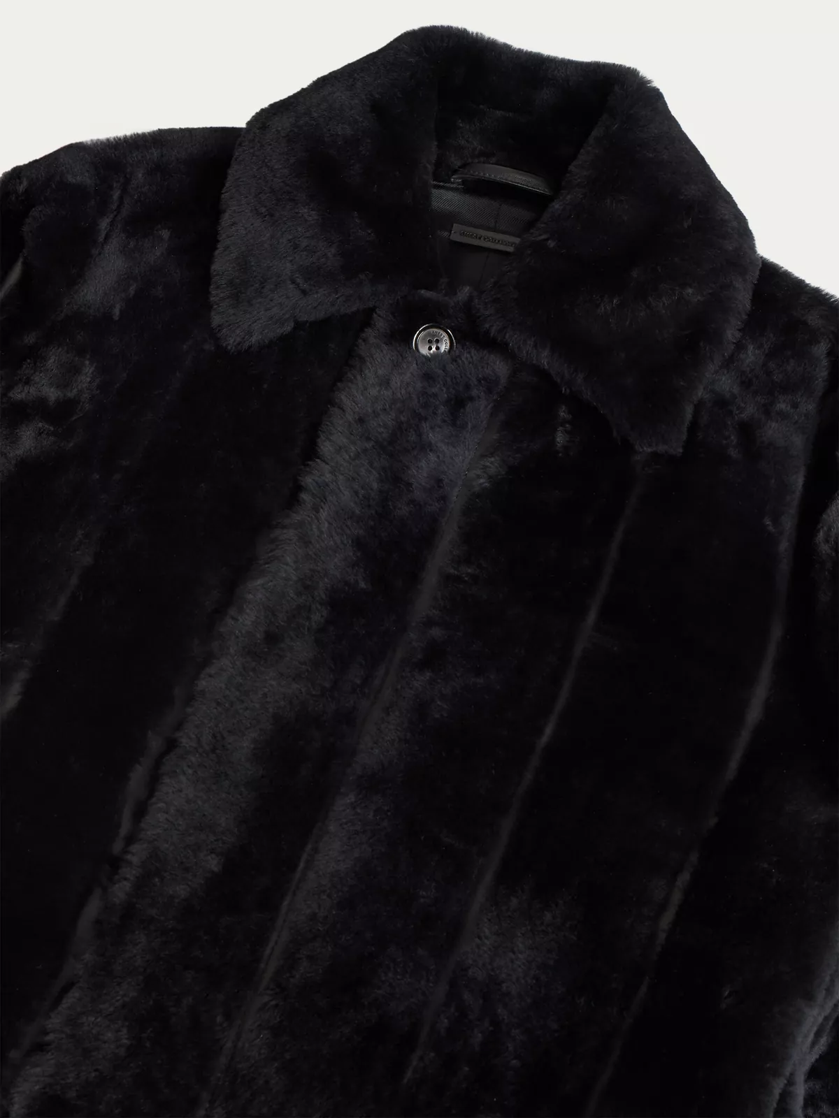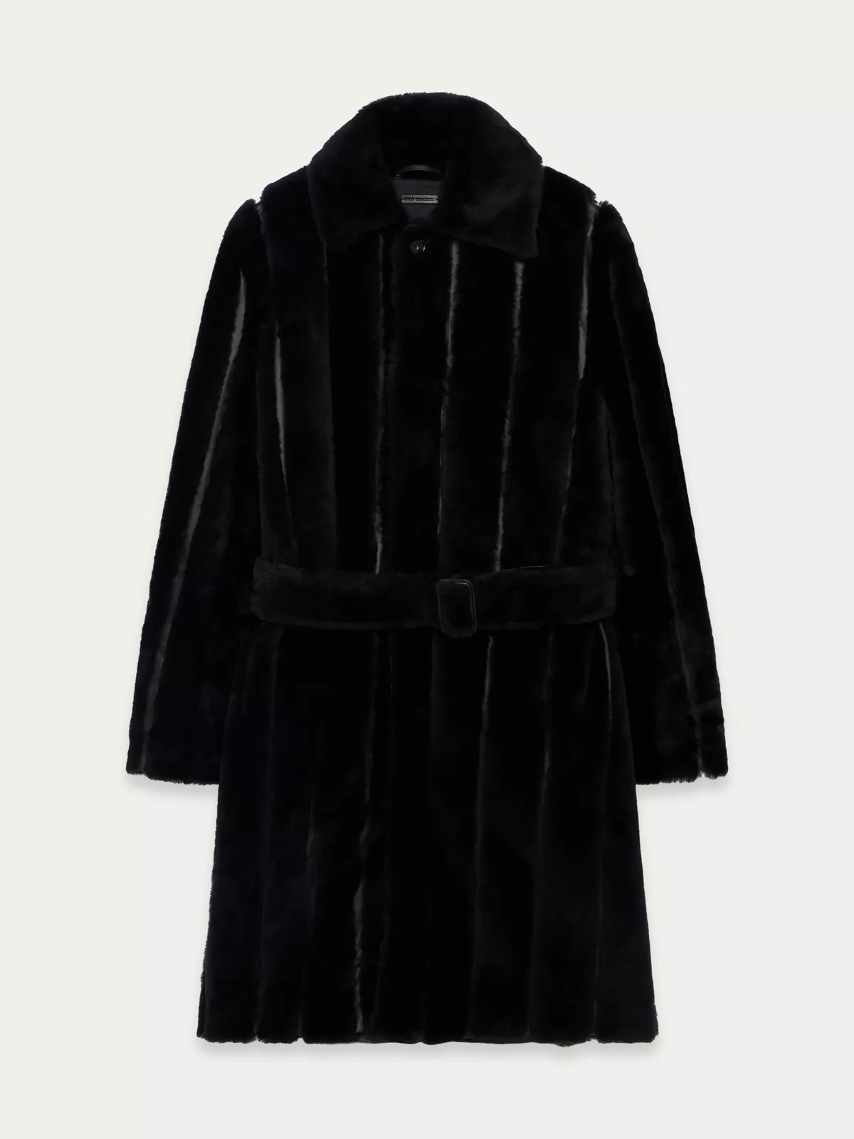 The style is finished with Horn buttons fastening, shearling and nappa big belt with leather covered buckle. Back centre slit with nappa gusset.