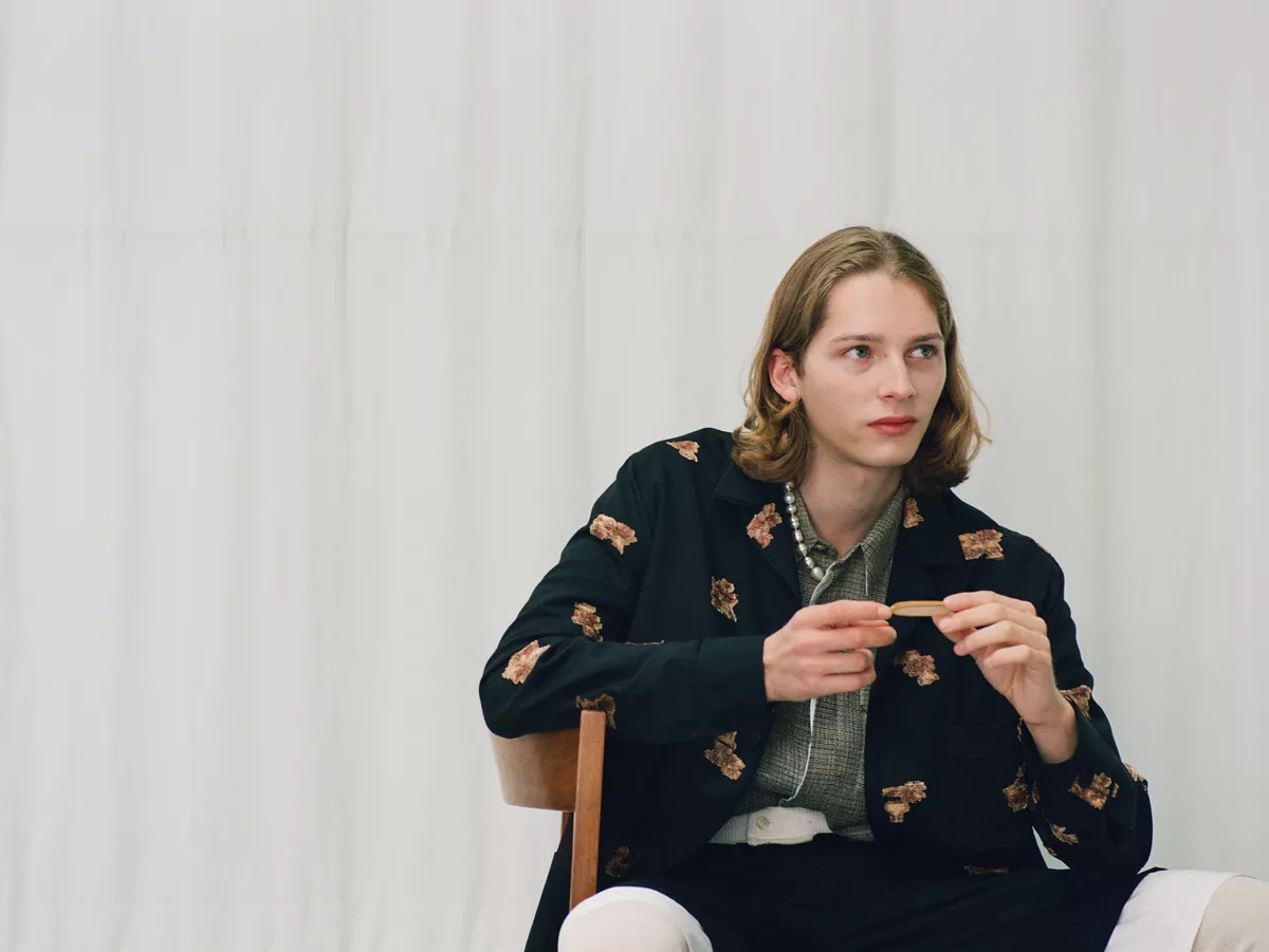 EVENING PAJAMA REVERSED JACQUARD WOOL JACKET ГONE-OF-A-KIND」