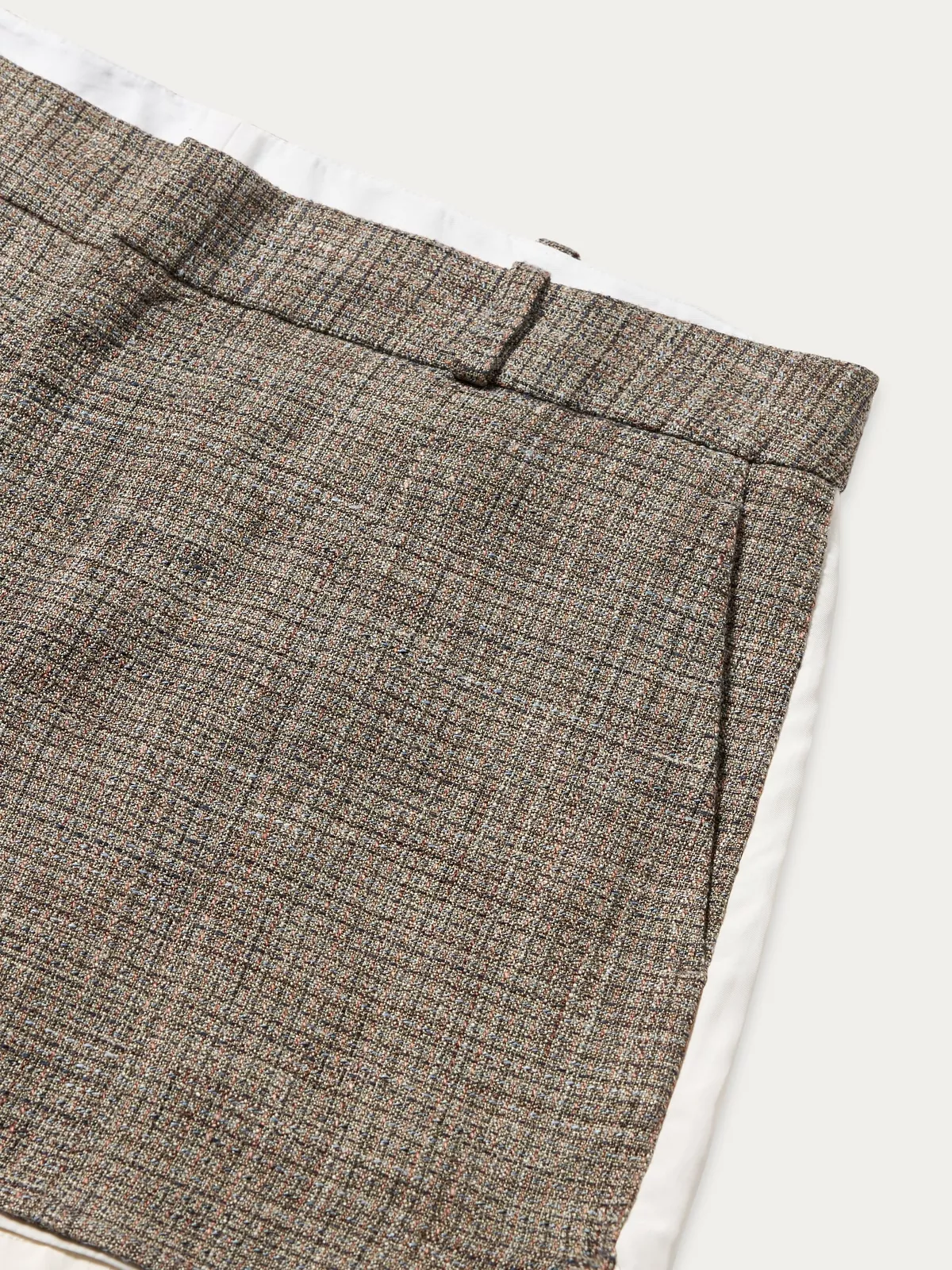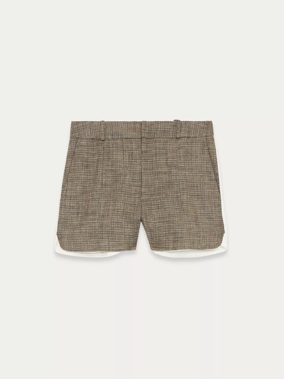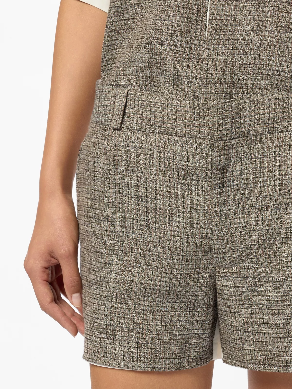 MELANGE CHECK LINEN-SILK TWEED UNISEX SHORTS ГONE-OF-A-KIND」