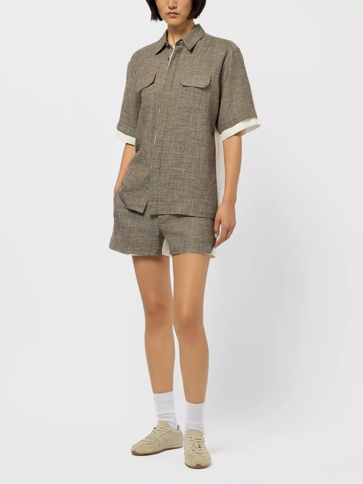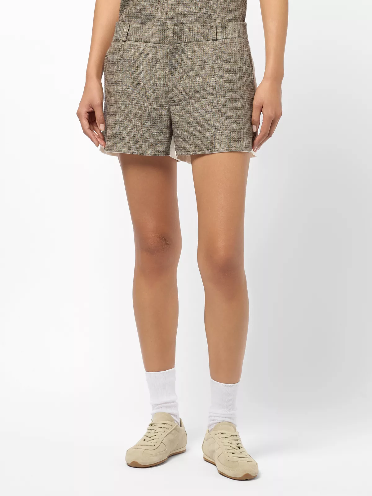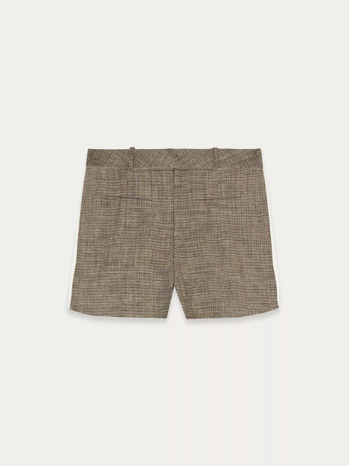 Tailored shorts in luxurious linen-silk tweed, accented by sleek