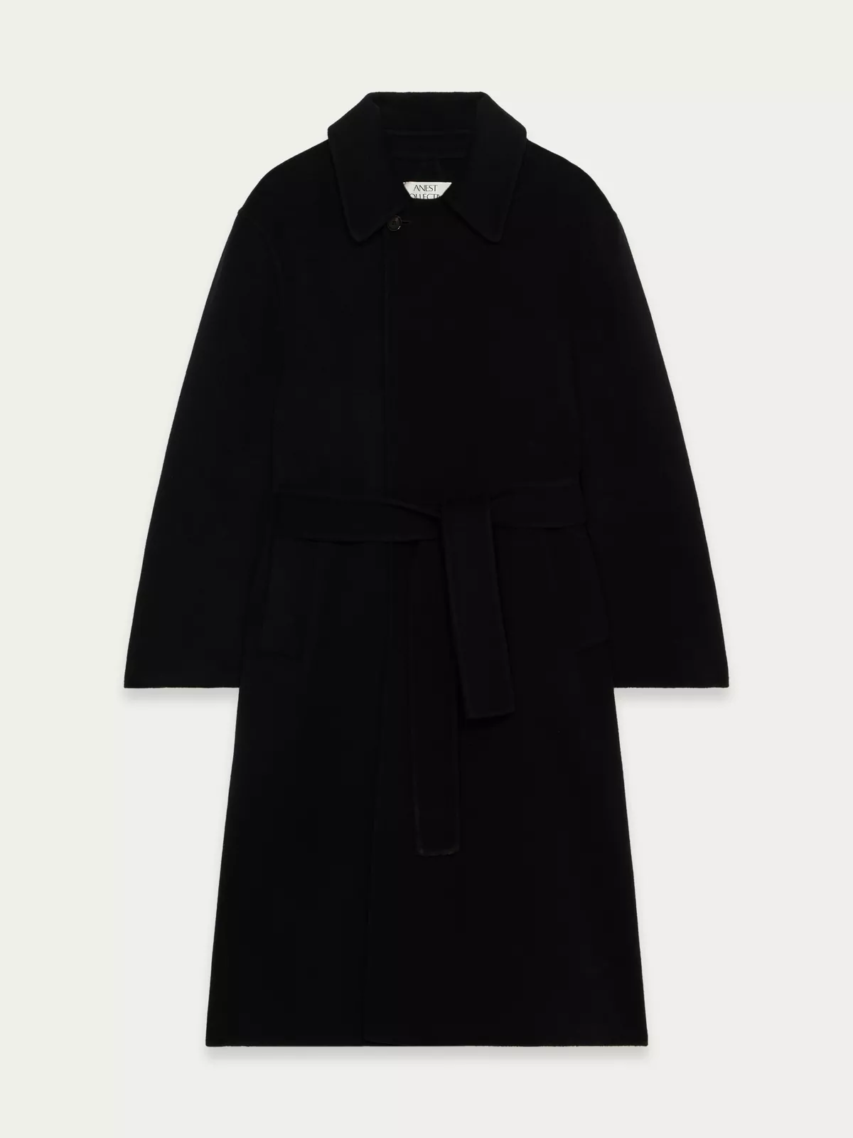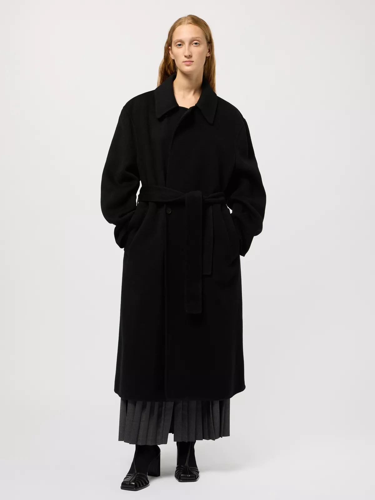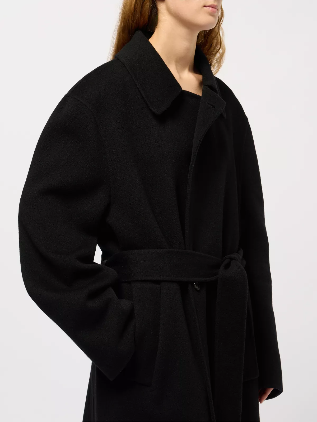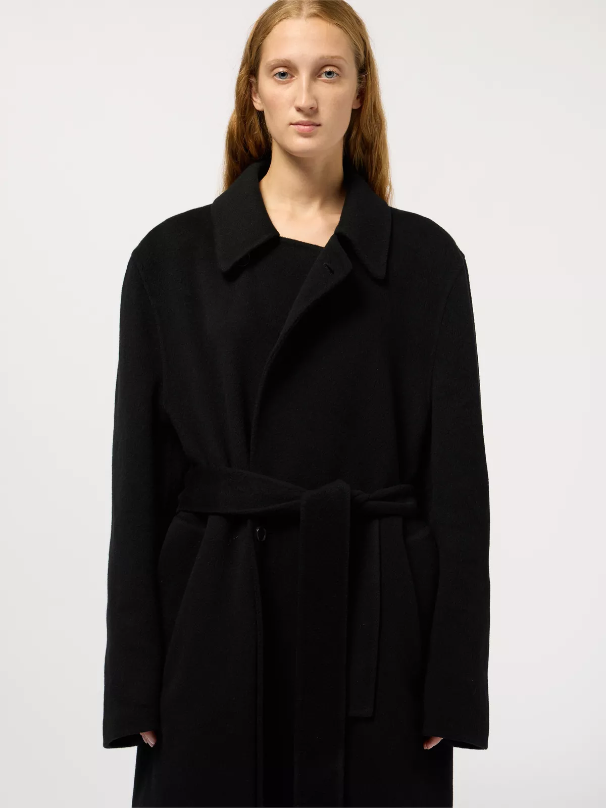 UNISEX DOUBLE CASHMERE WRAP COAT IN BLACK