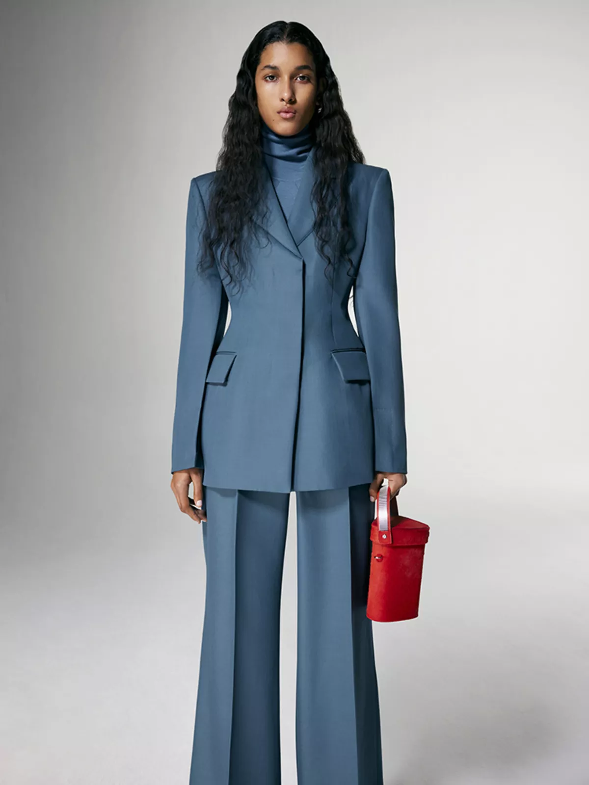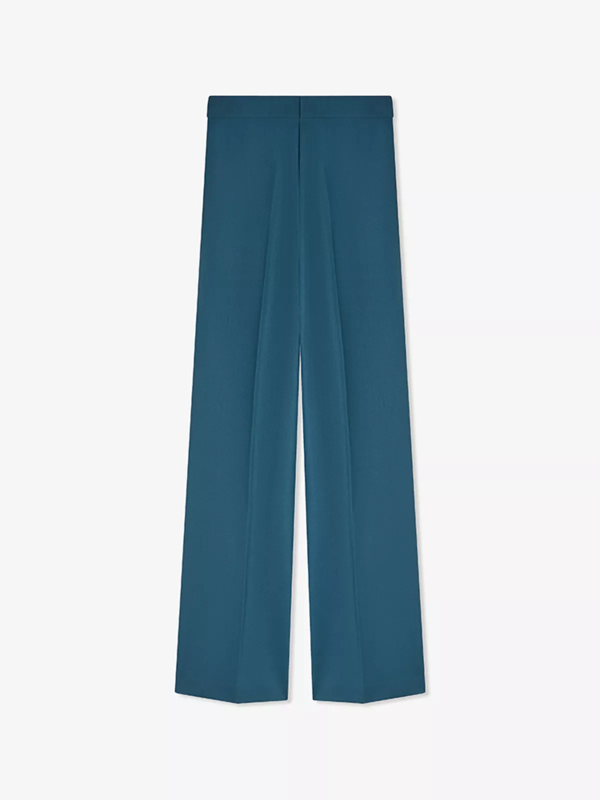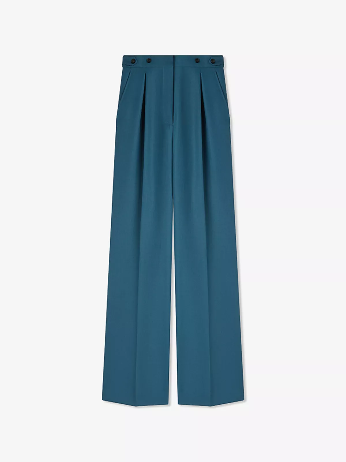Medium-fit, front-pleat wool-mohair trousers with waist adjusters and back belt loop details.