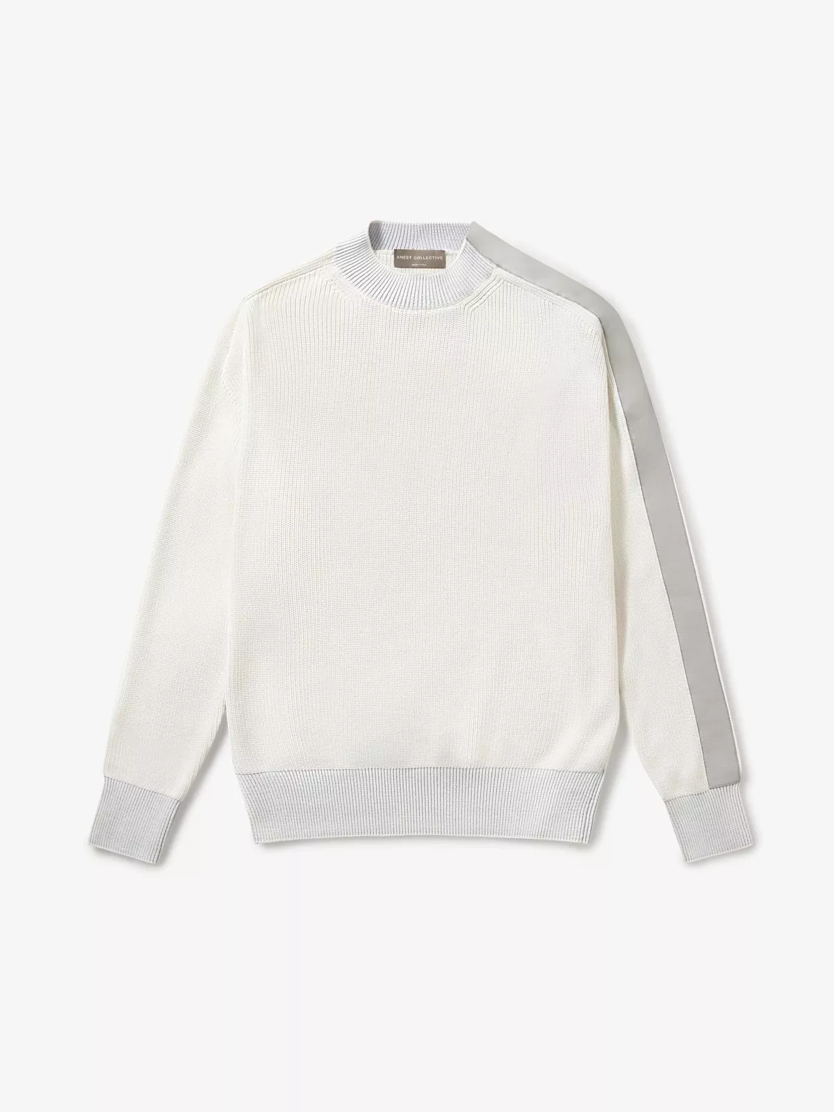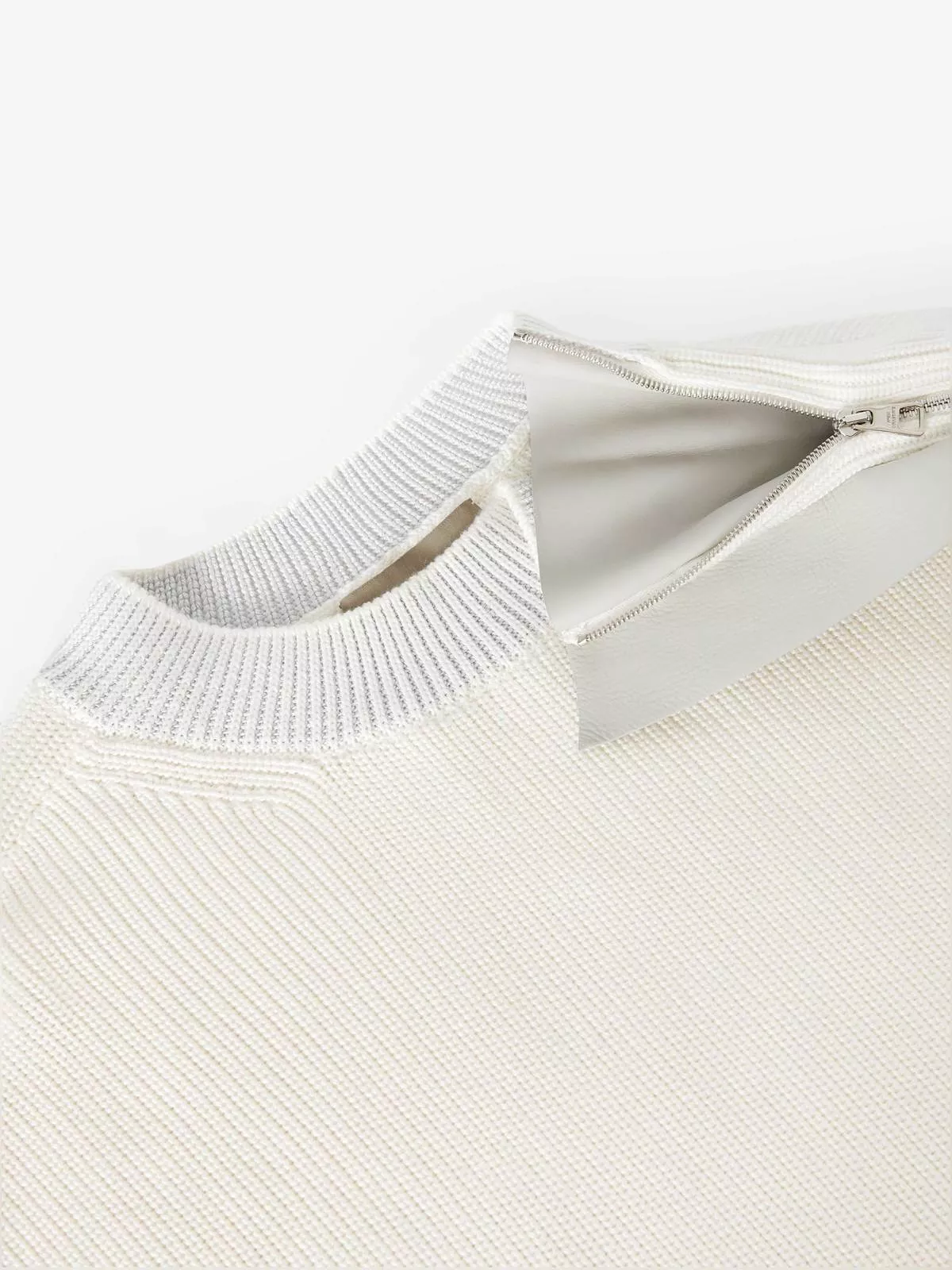 这款针织毛衣采用奢华的棉丝混纺面料和小牛皮刺绣拼接料制成,剪裁笔直,带有对比色的高领、袖口和下摆,肩部拉链便于穿着。
