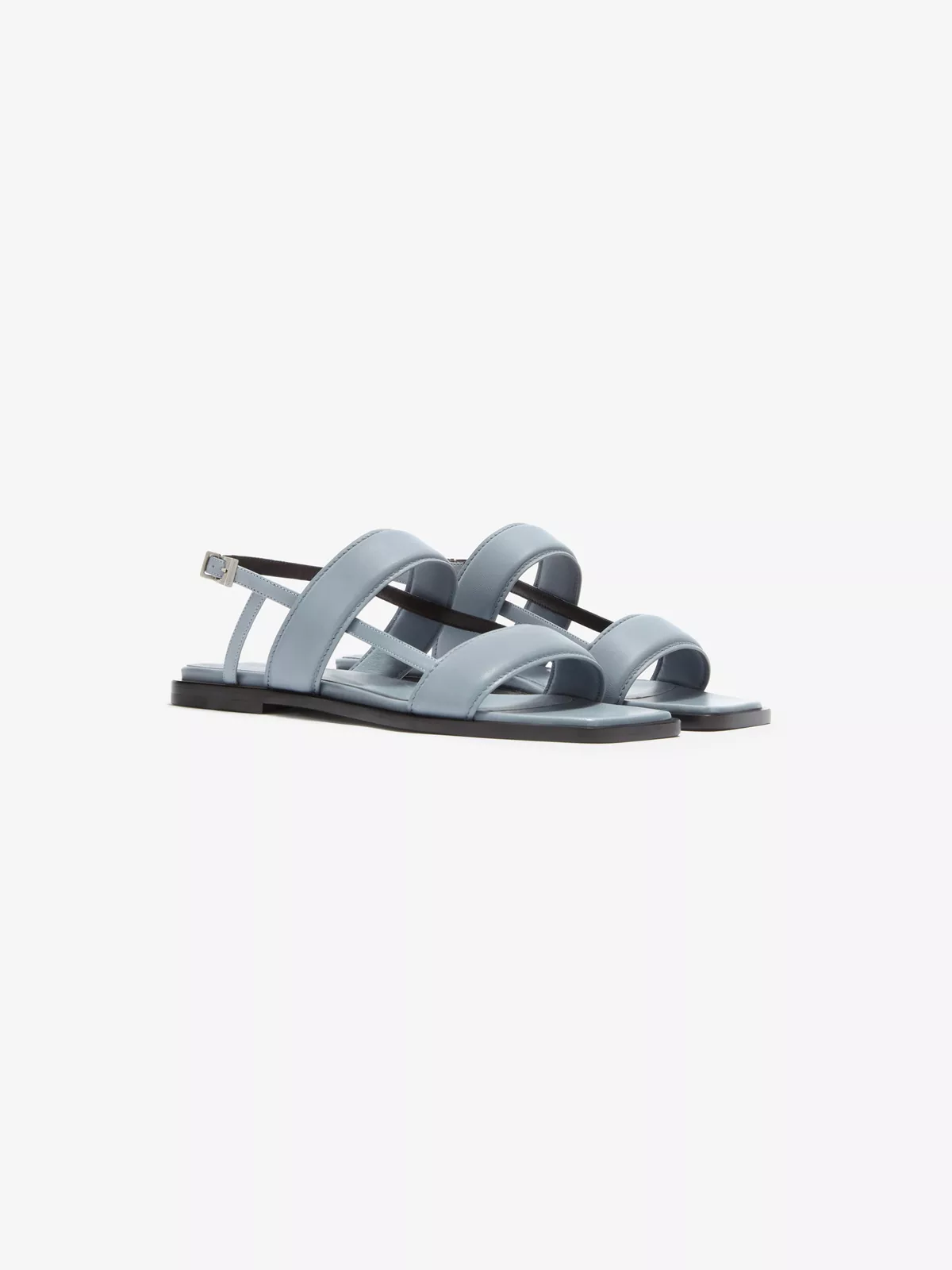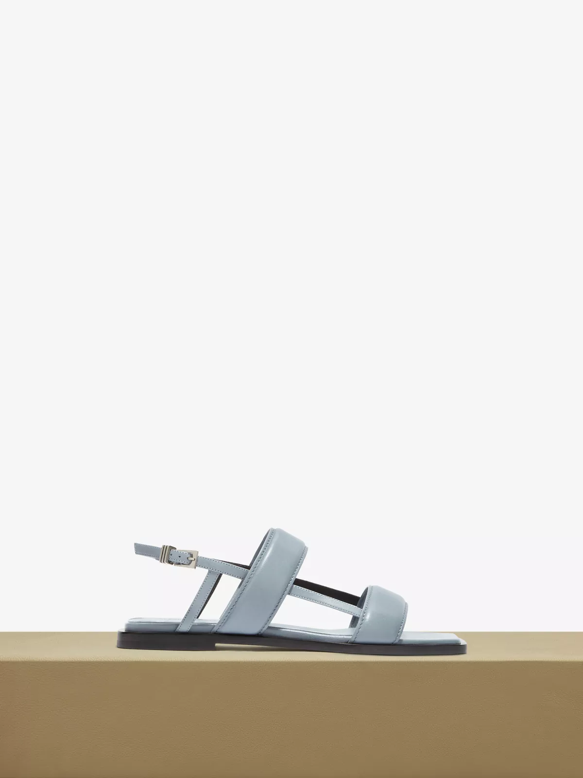 由柔软的小山羊皮手工制作而成,这款极简线条的凉鞋有一个现代的中跟和细长的后交叉脚踝带。