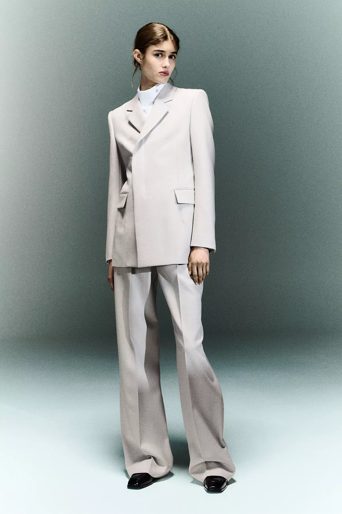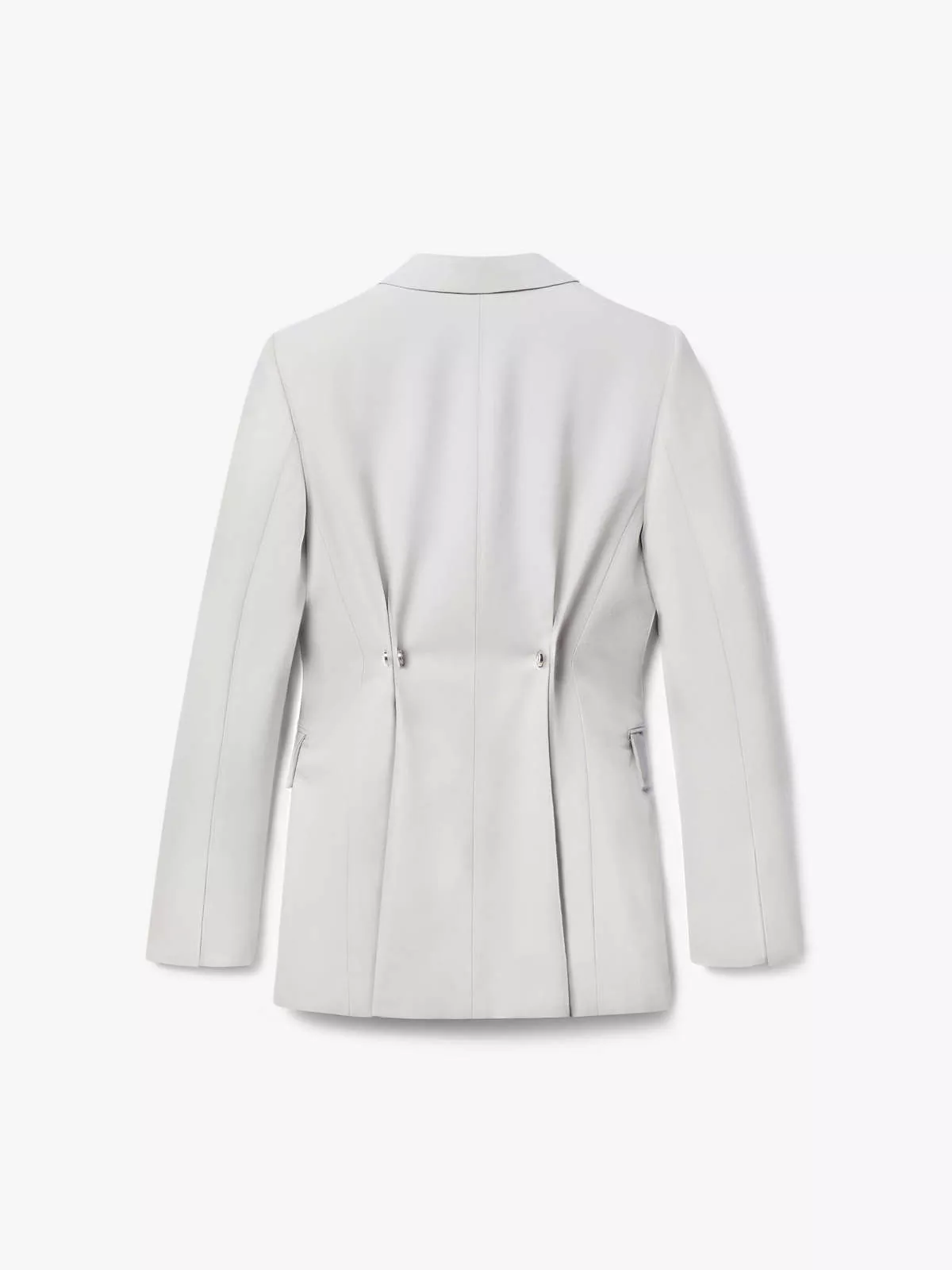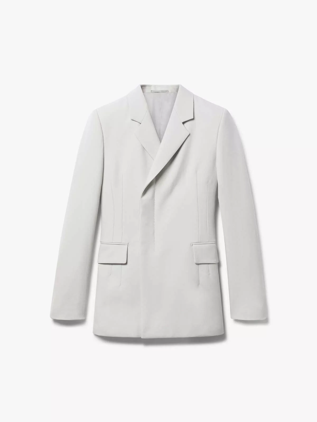 Cut from a luxuriously soft wool and shaped to a slim, double-breasted silhouette, this classic jacket has an exaggerated shoulder roll, concealed button fastenings and a flattering, waist-cinching cufflink closure on the reverse.