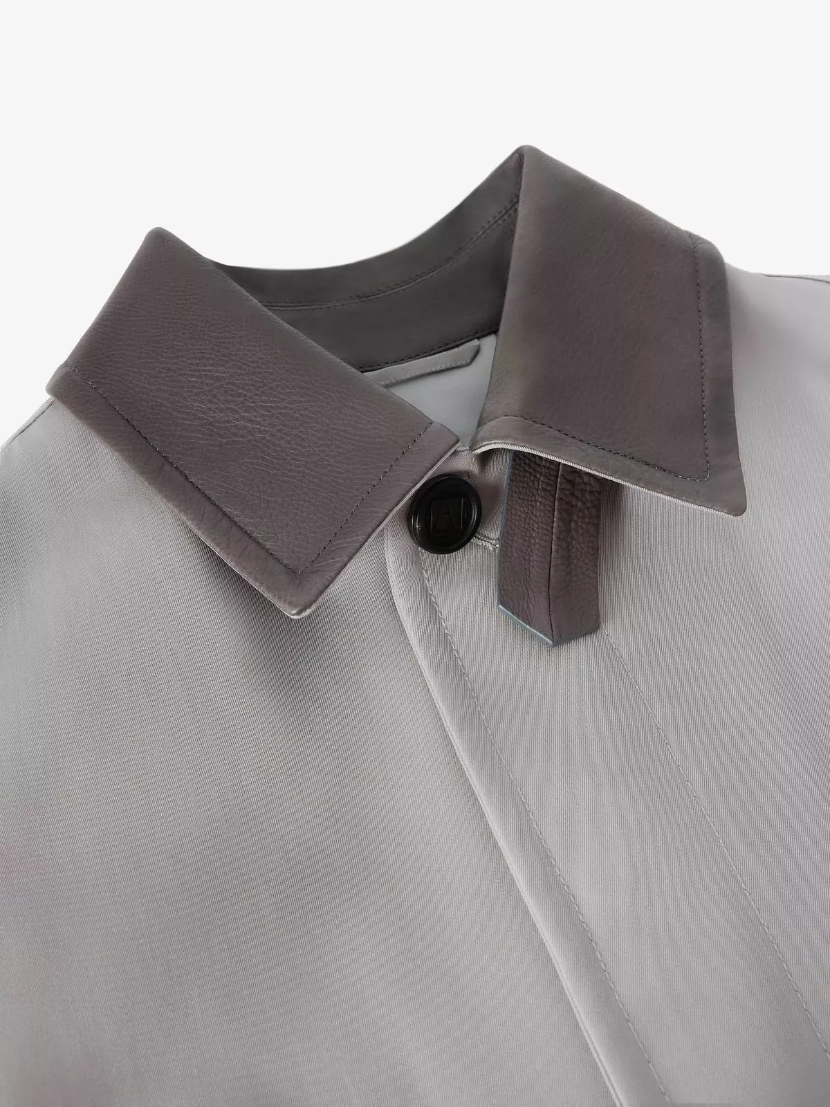 WOOL-BLEND TRENCH COAT WITH LEATHER DETAILS IN TAUPE AND LIGHT GREY