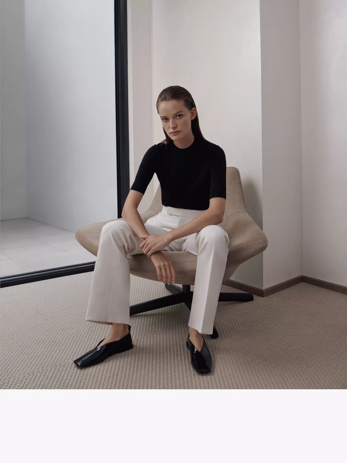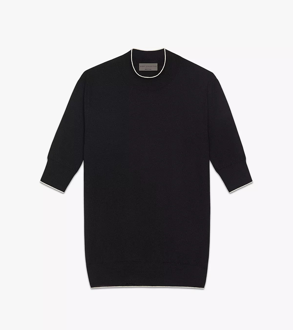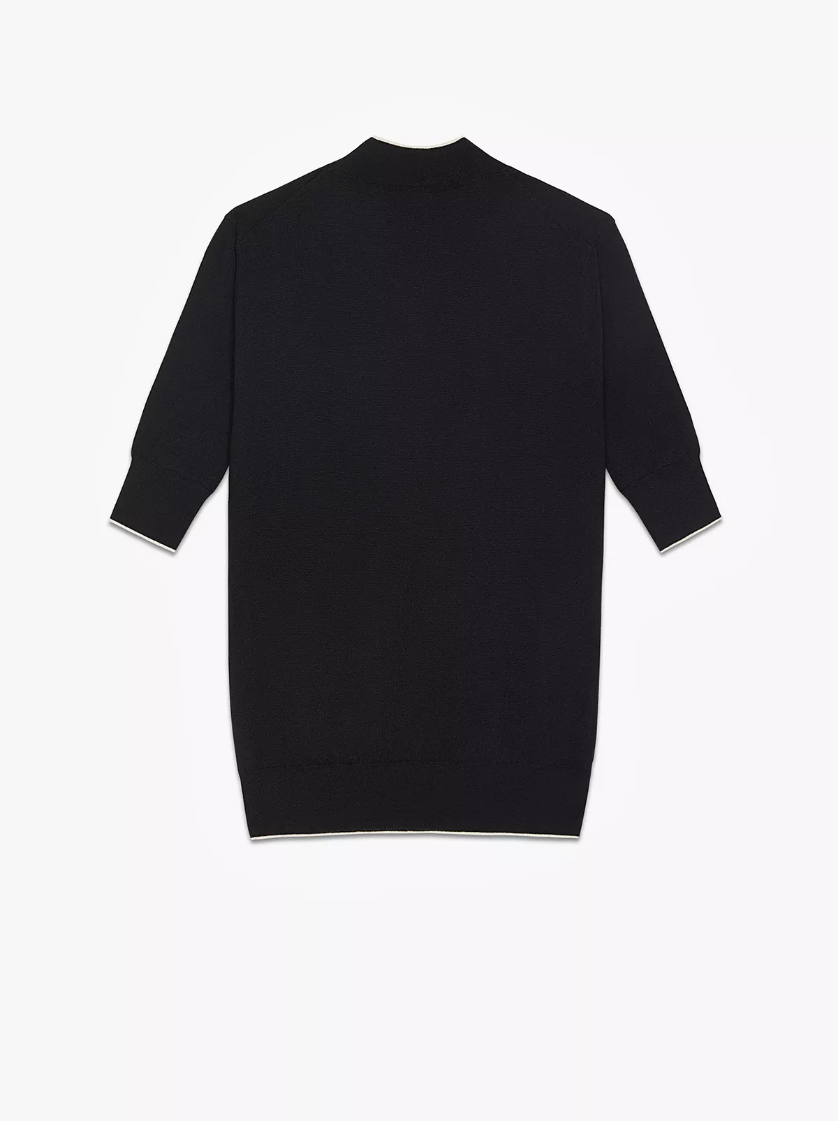 黑色白杏边极细美利奴羊毛小高领针织中袖