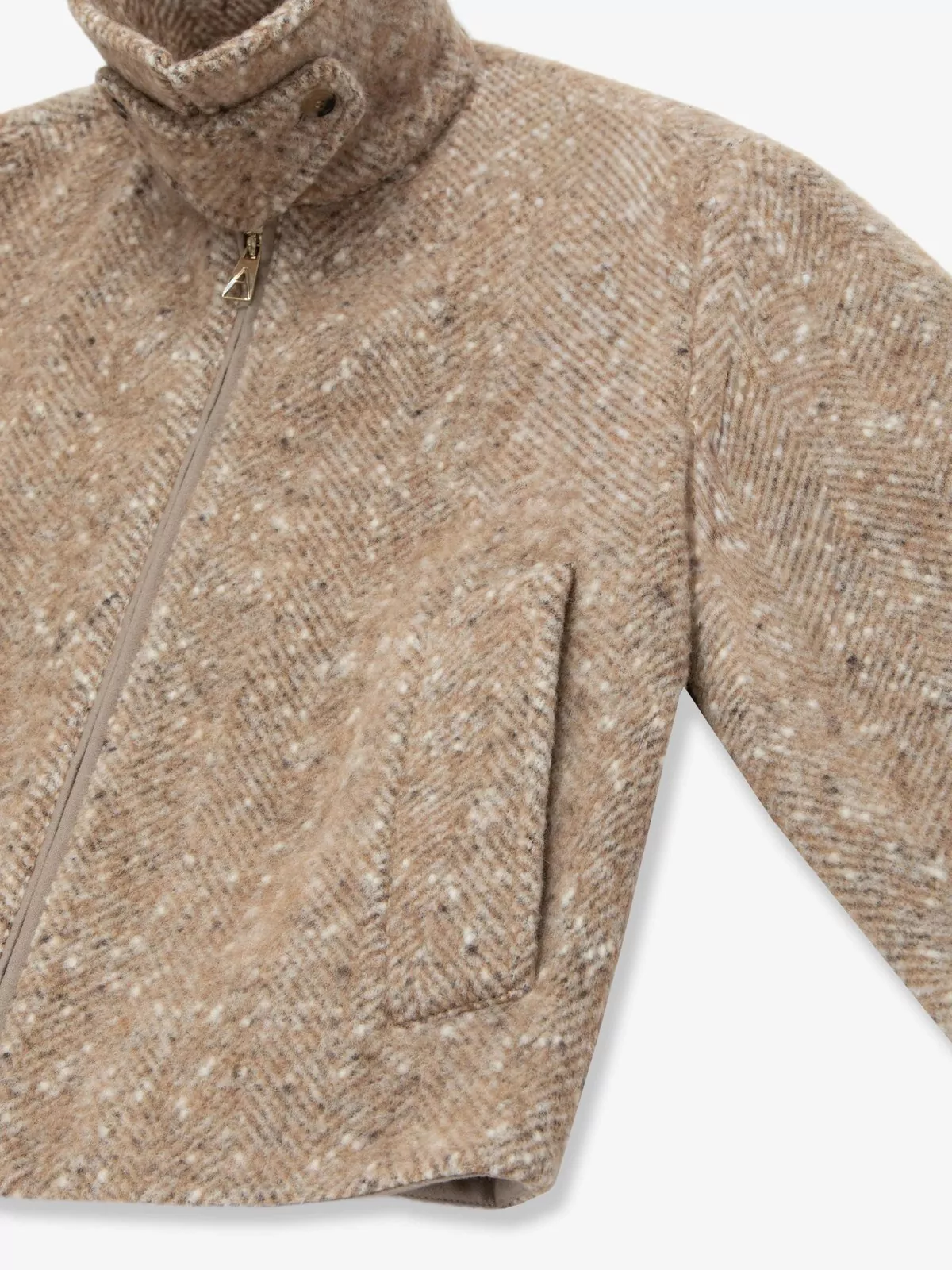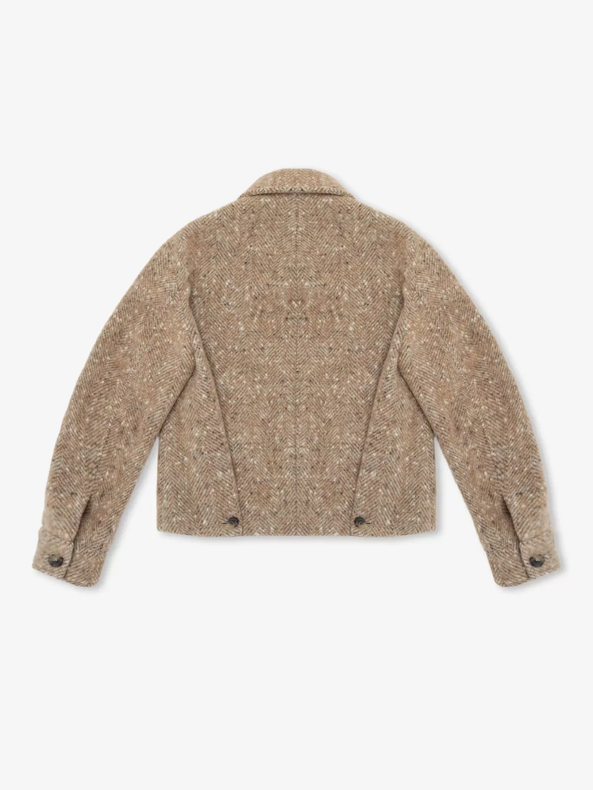 奶白白兰地混色人字纹羊驼毛混纺夹克「限量3件」