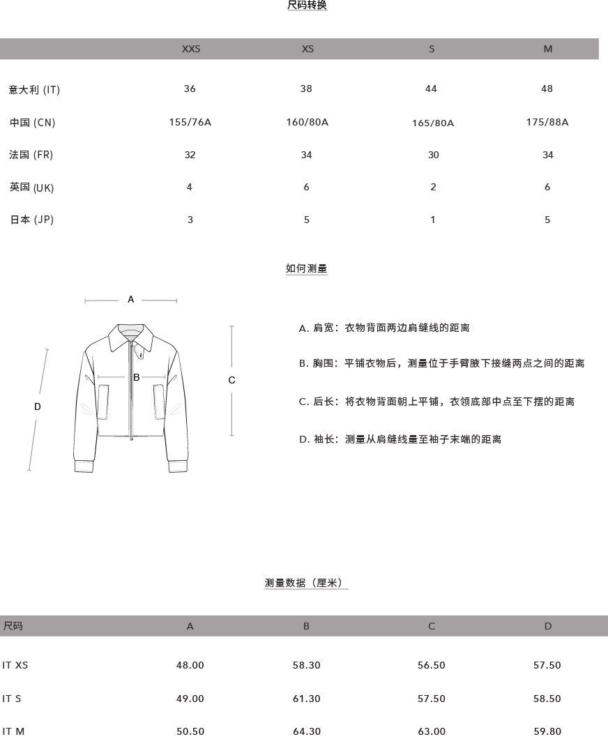 经典衬衫领设计,前襟搭配双向拉链头金属拉链;两侧设嵌线口袋,背部下摆饰两道宽褶(配牛角扣固定);全内衬设计兼顾舒适与结构感。