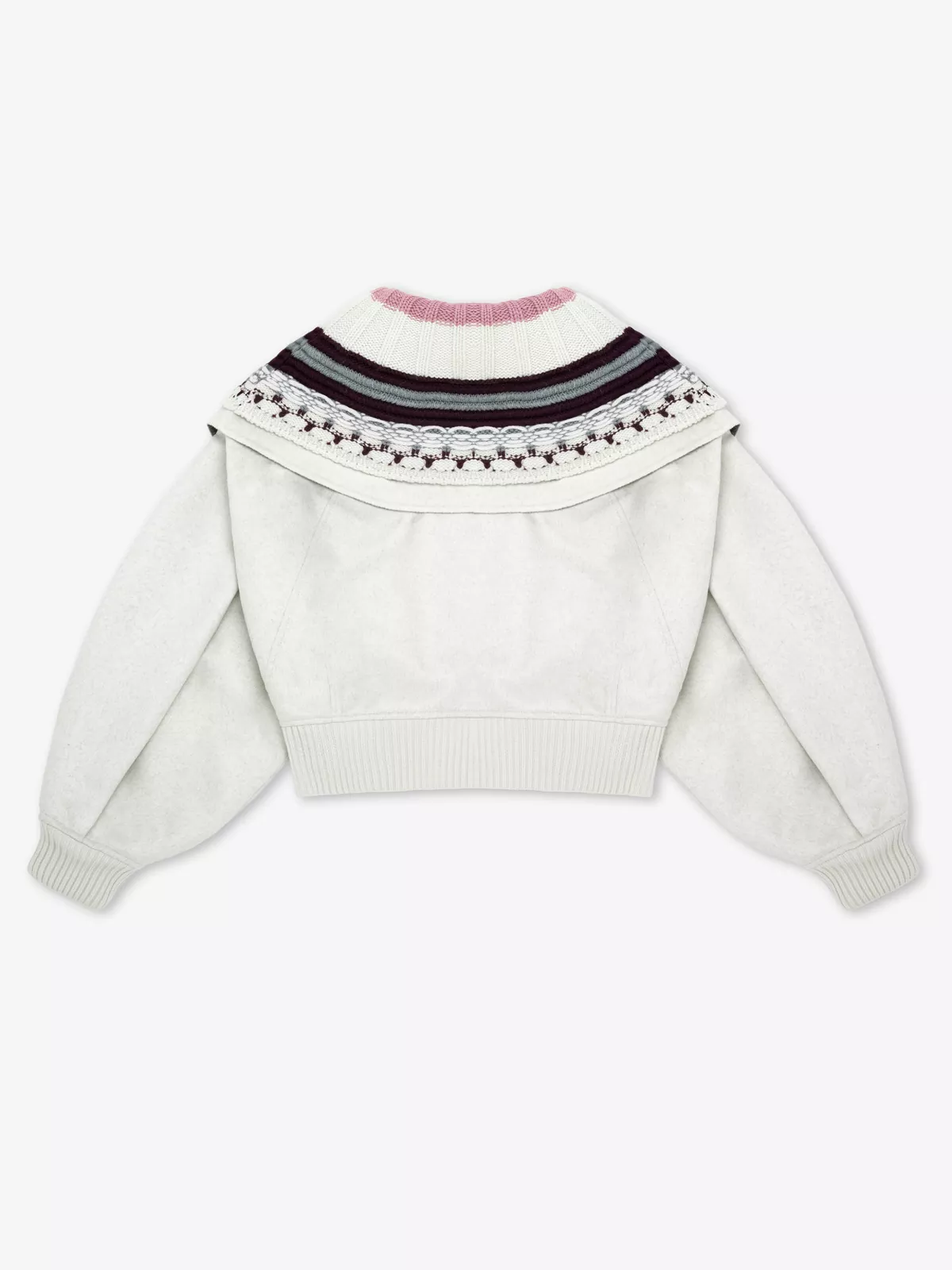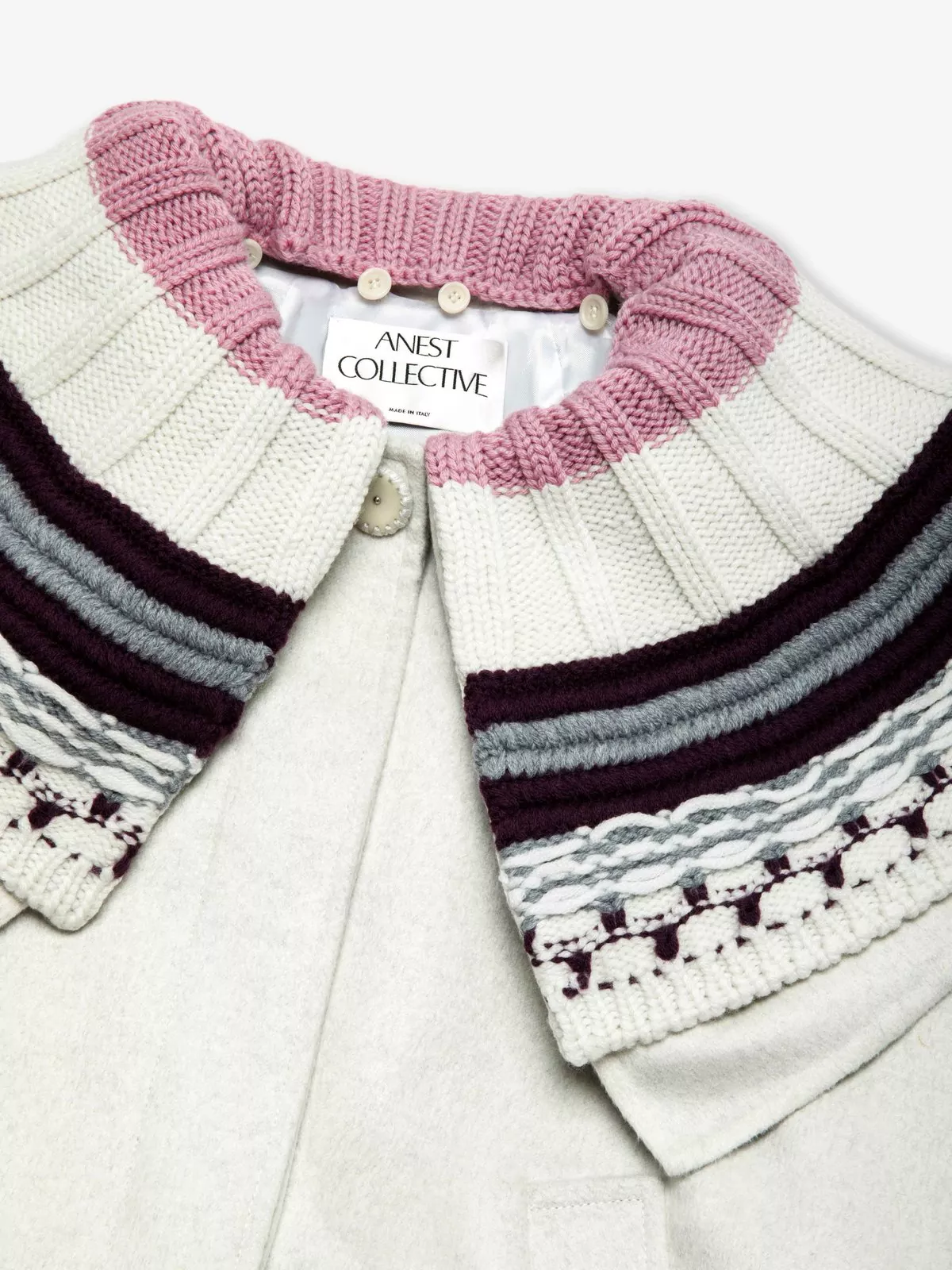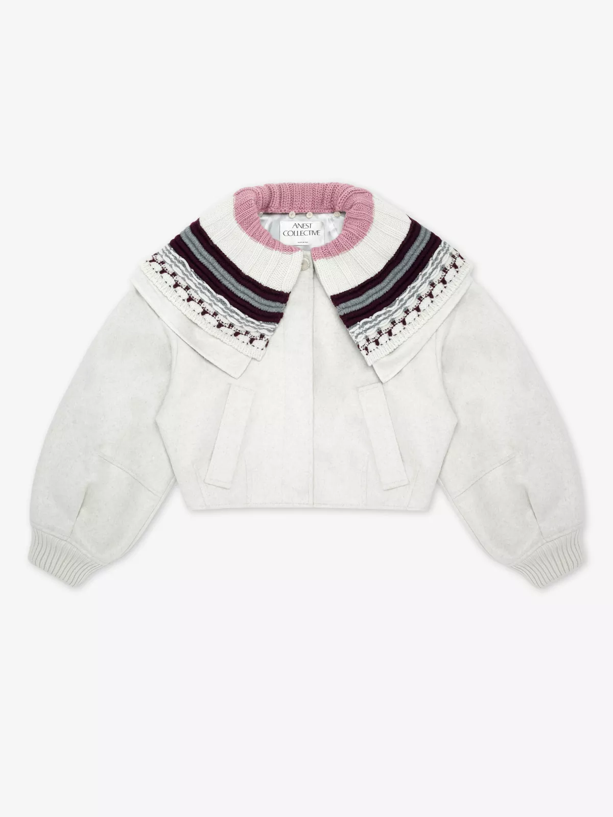 灰色/珍珠白双色双面羊绒茧型夹克(配针织领)「限量5件」
