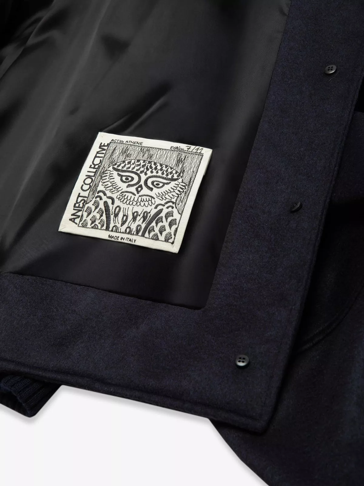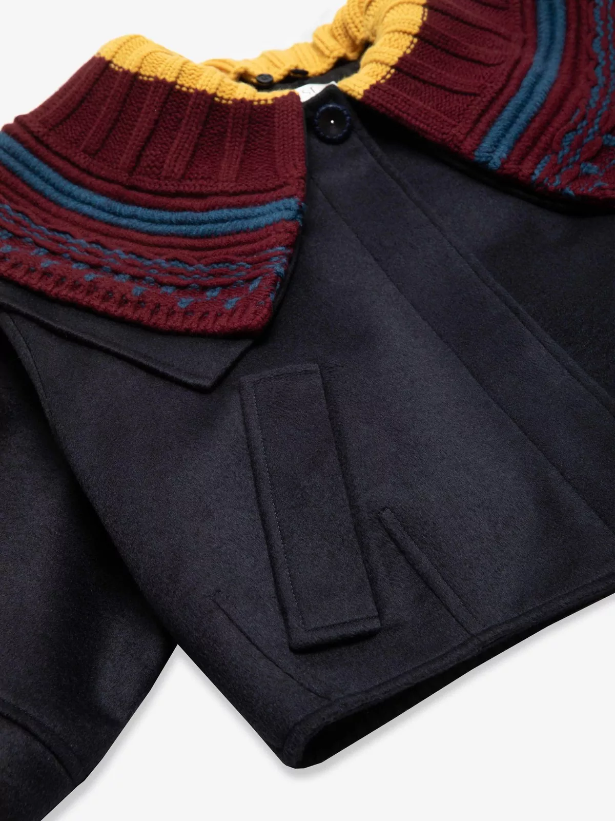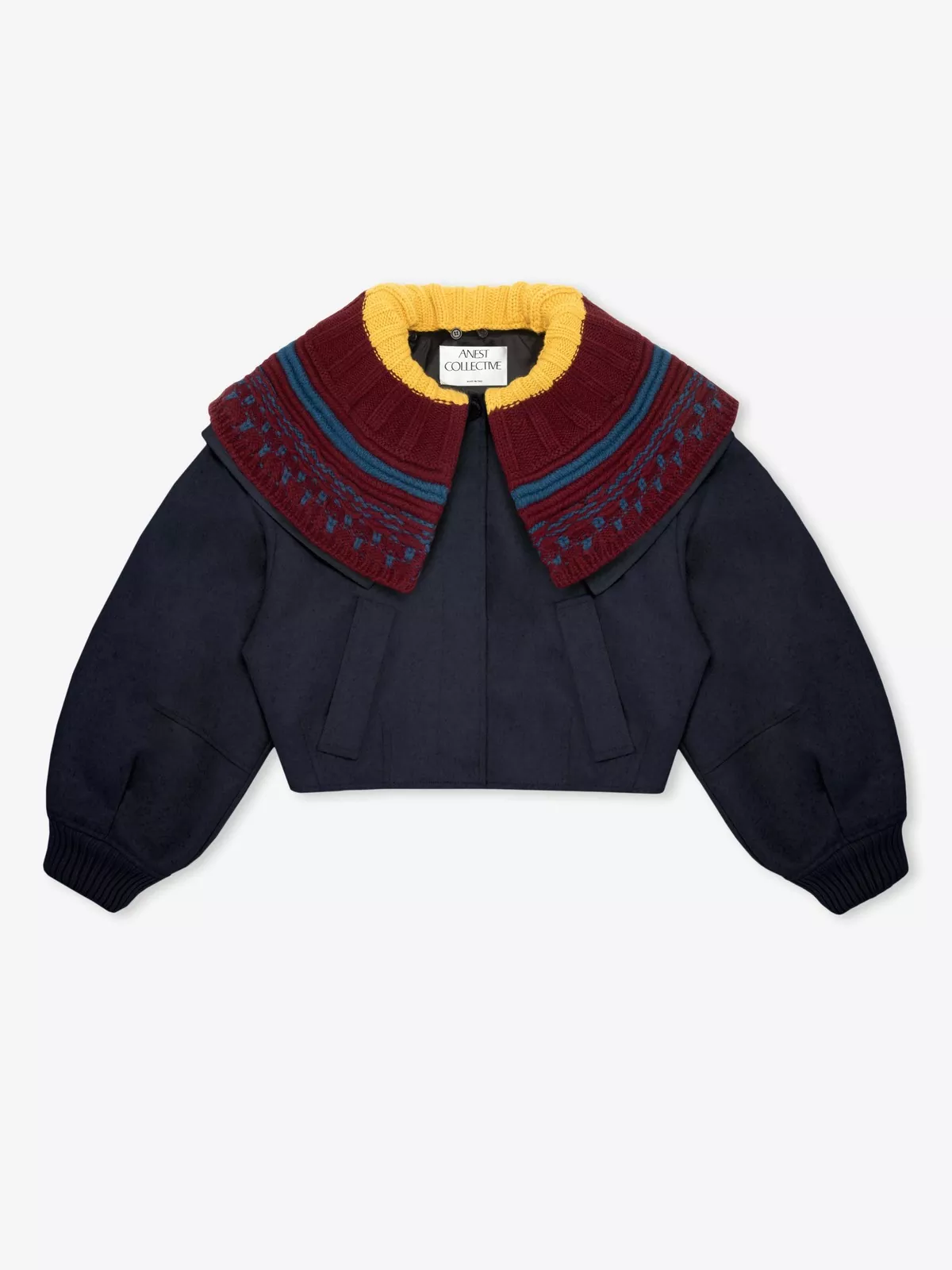 黑色/海军蓝双色双面羊绒茧型夹克(配针织领)「限量6件」